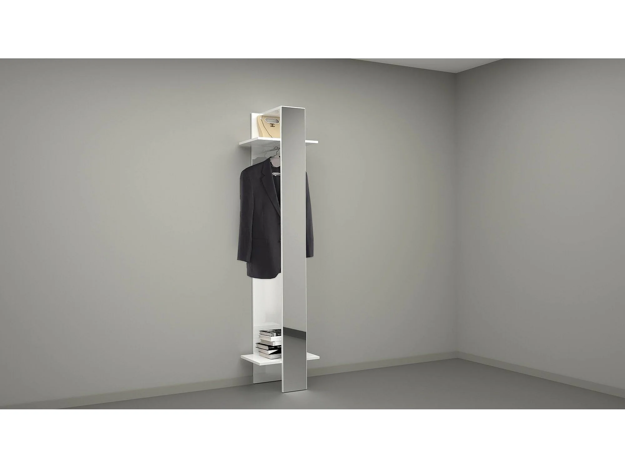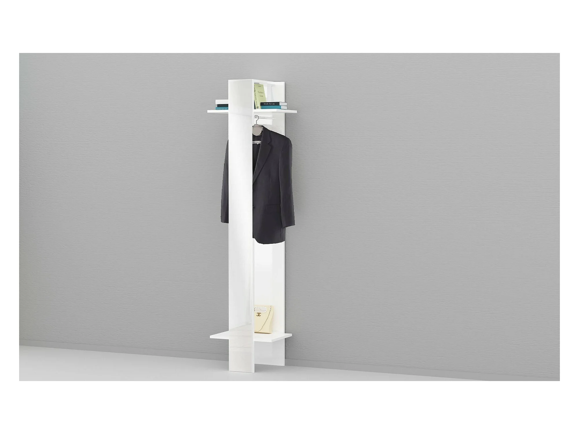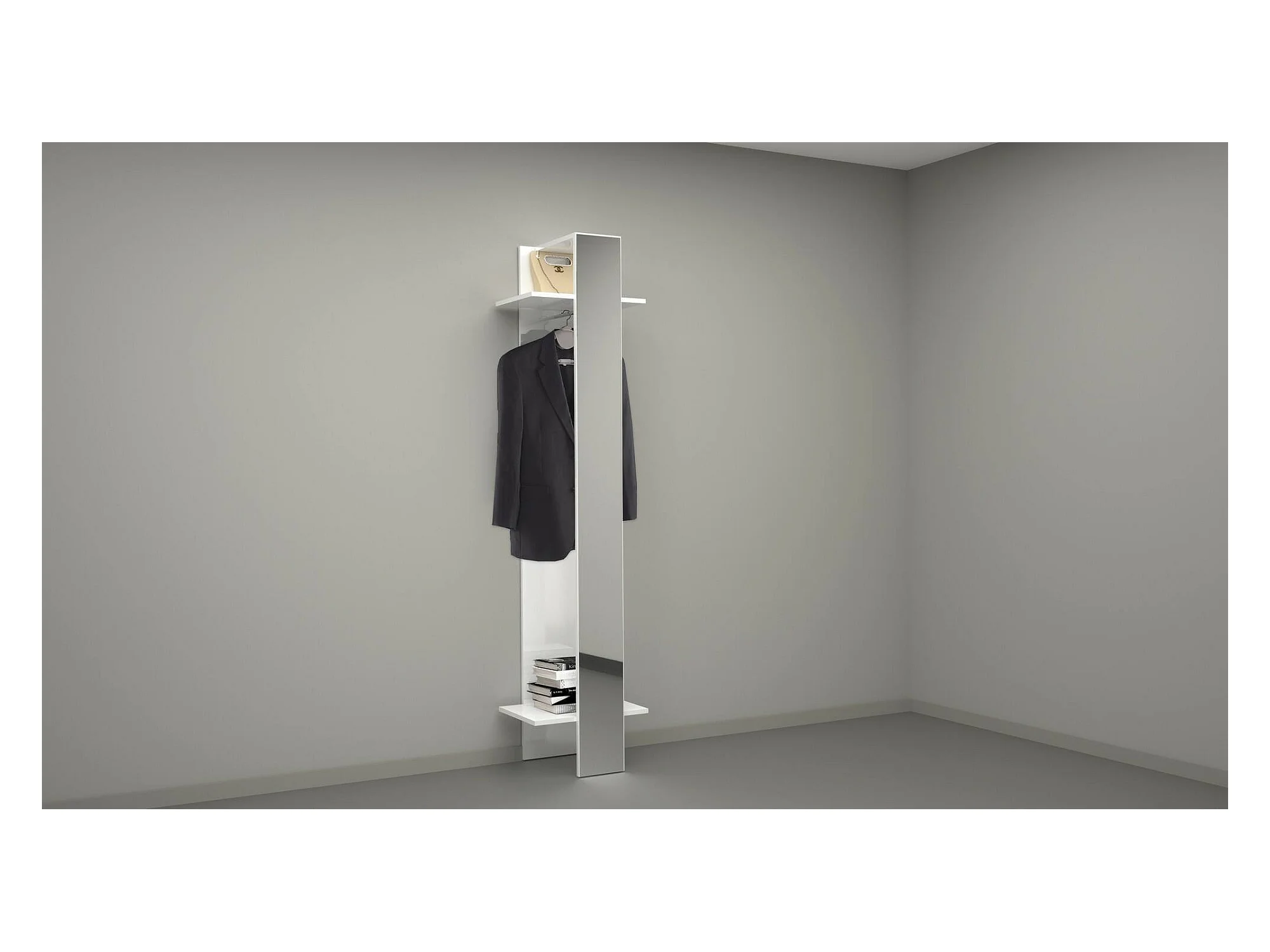 Meuble d'entrée Violantino, Armoire multifonctionnelle, Cintre mural avec miroir, 50x35h190 cm, Blanc