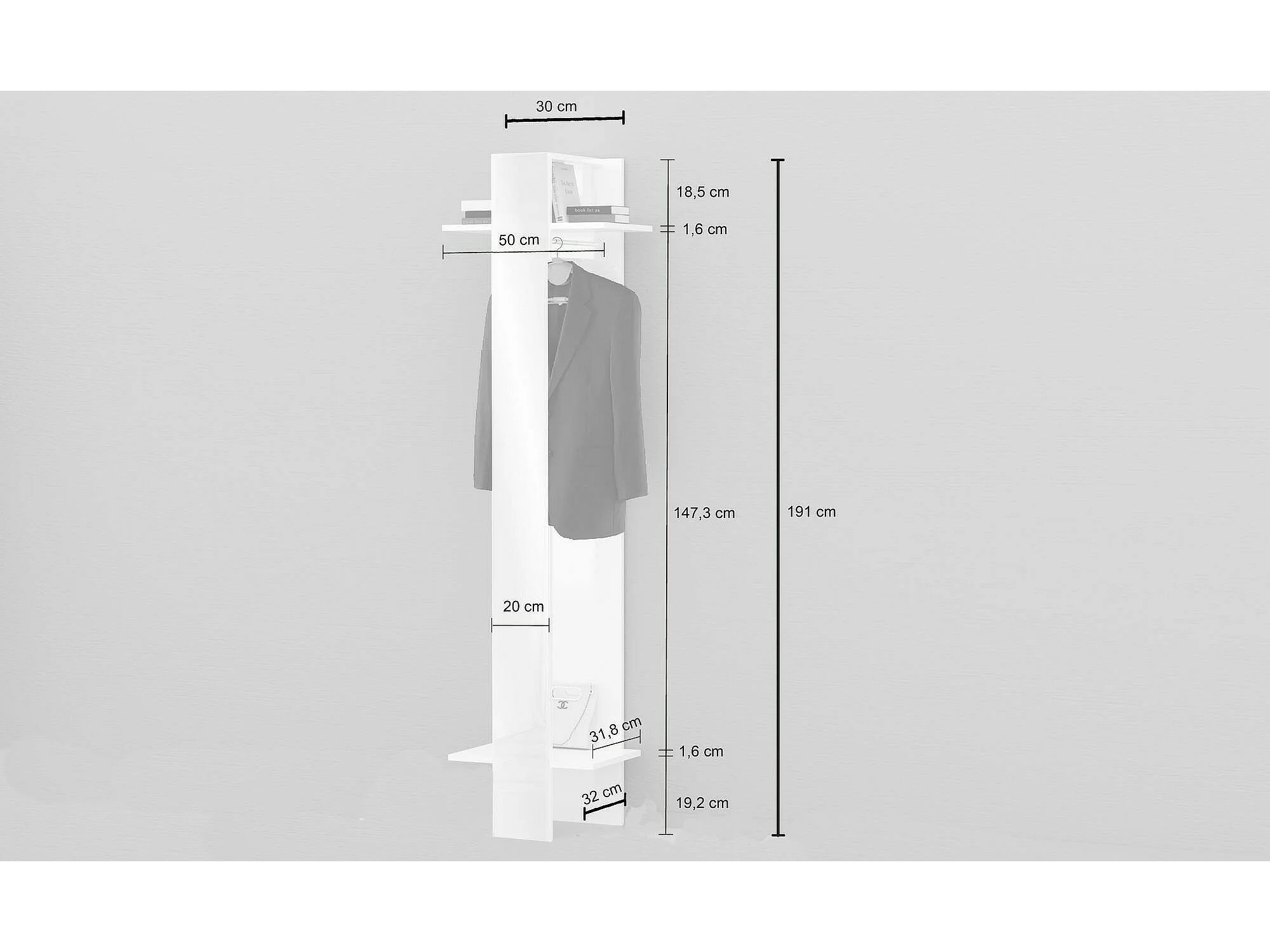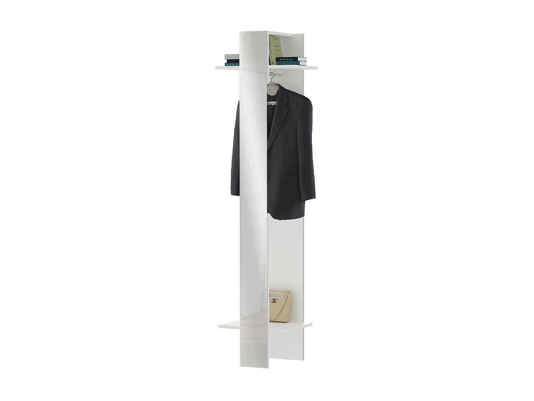 Meuble d'entrée Djohnse, Entrée moderne avec portemanteau, Armoire avec étagère à chaussures, Armoire avec miroir, Cm 50x32h182, Blanc