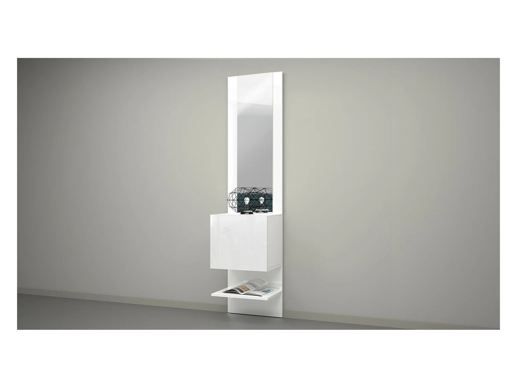 Mobilier d'entrée Dabada, Entrée multifonction moderne, Casier polyvalent pour hall d'entrée, 100% Made in Italy, 40x27h186 cm, Blanc brillant
