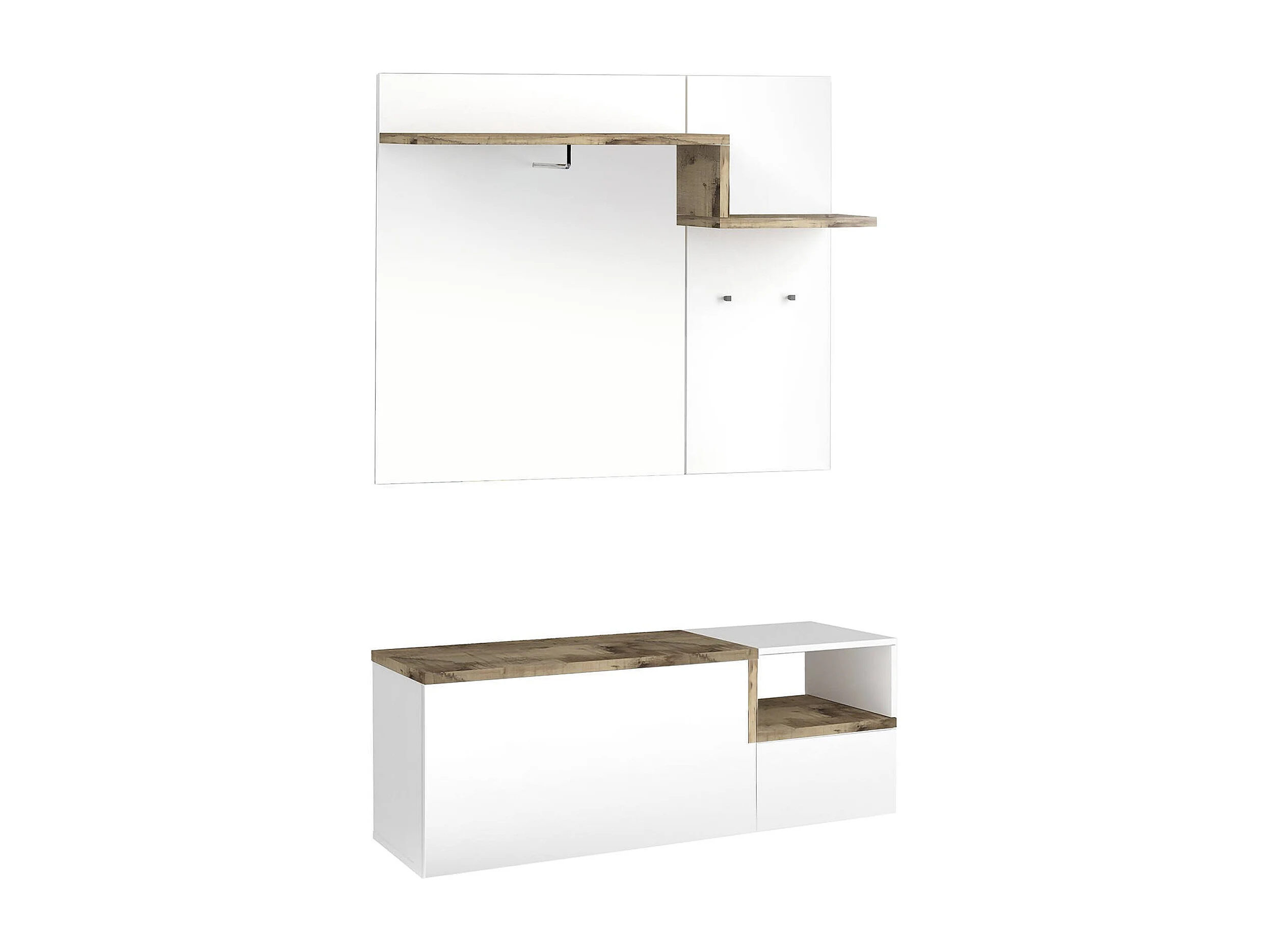 Meuble d'entrée Yuri, entrée multifonction moderne, casier polyvalent pour hall d'entrée, 100% Made in Italy, 120x40h54 cm, blanc brillant et érable