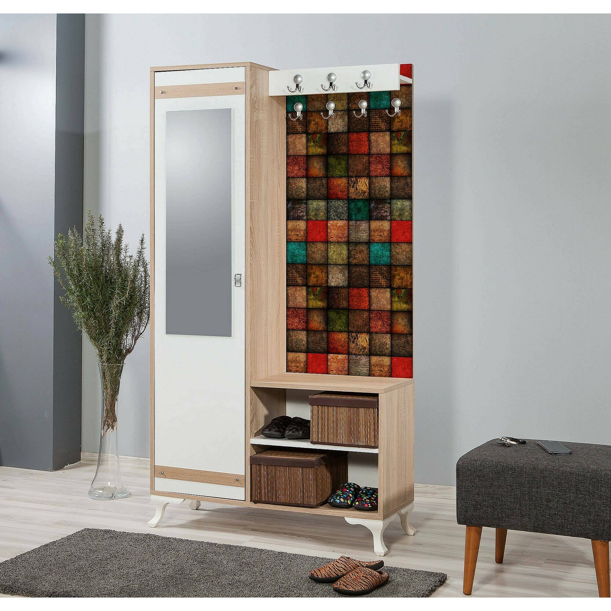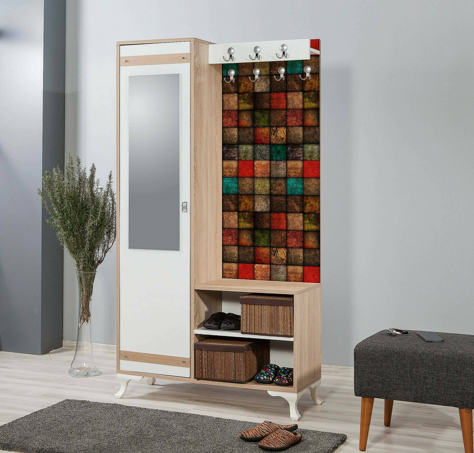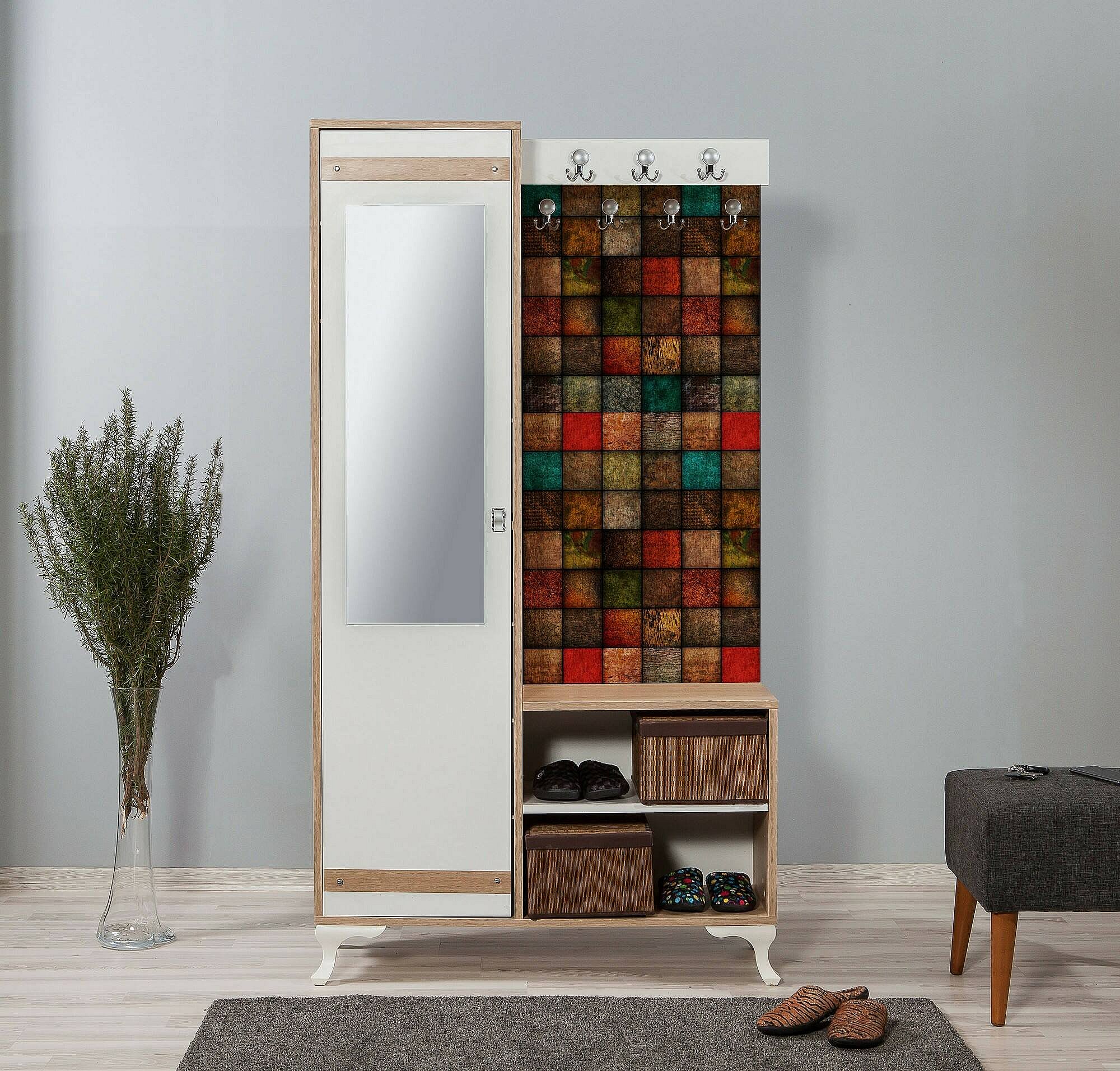 MEUBLE D'ENTRÉE - Crochet d'entrée, Composition pour l'atrium, Console de rangement multifonction, 100x36h190 cm, Chêne et Multicolore.
