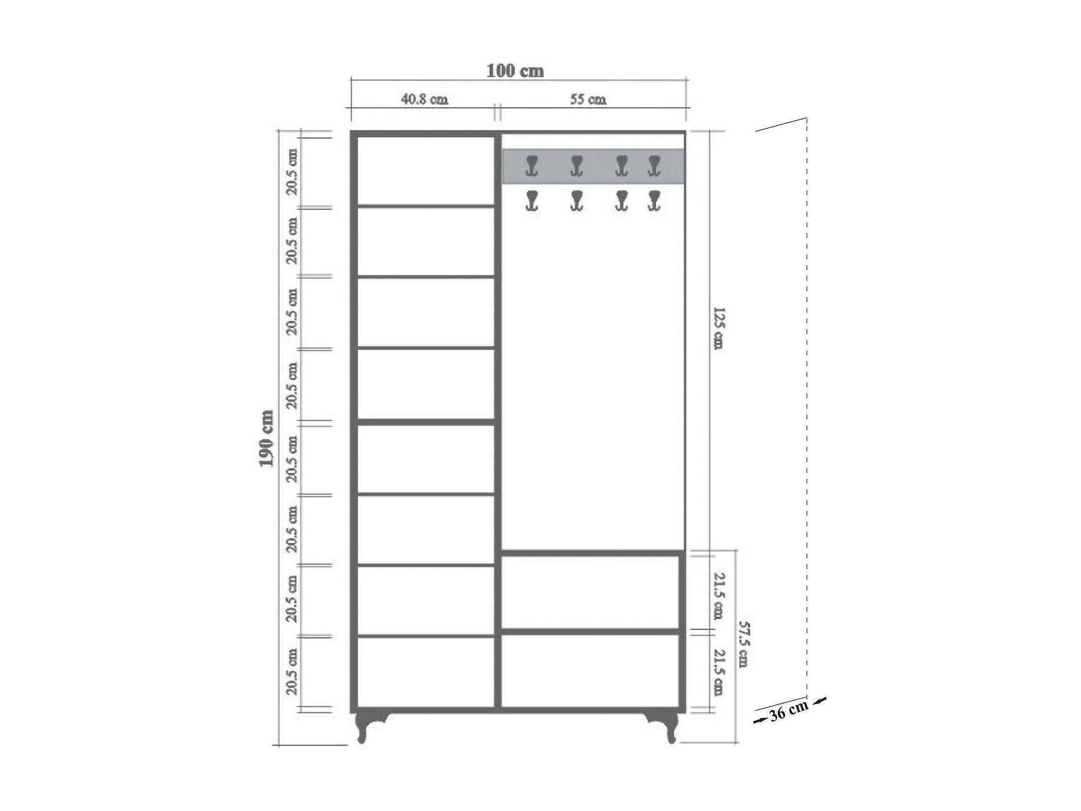 DIMENSIONS EN CM - Meuble d'entrée : Longueur: 100 Largeur: 36 Hauteur: 190