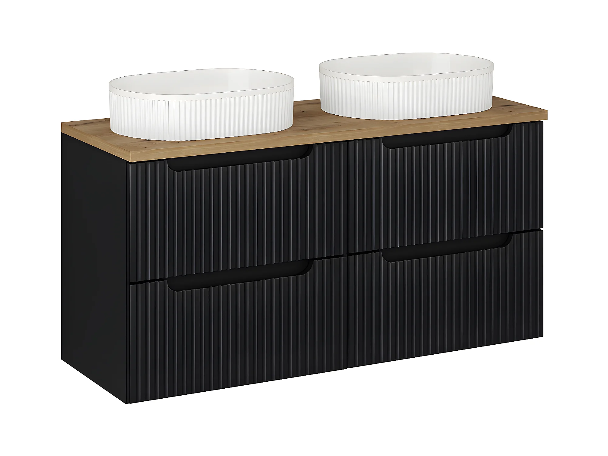 Meuble double vasque 120cm 4 tiroirs Elora Noir et bois Cloud