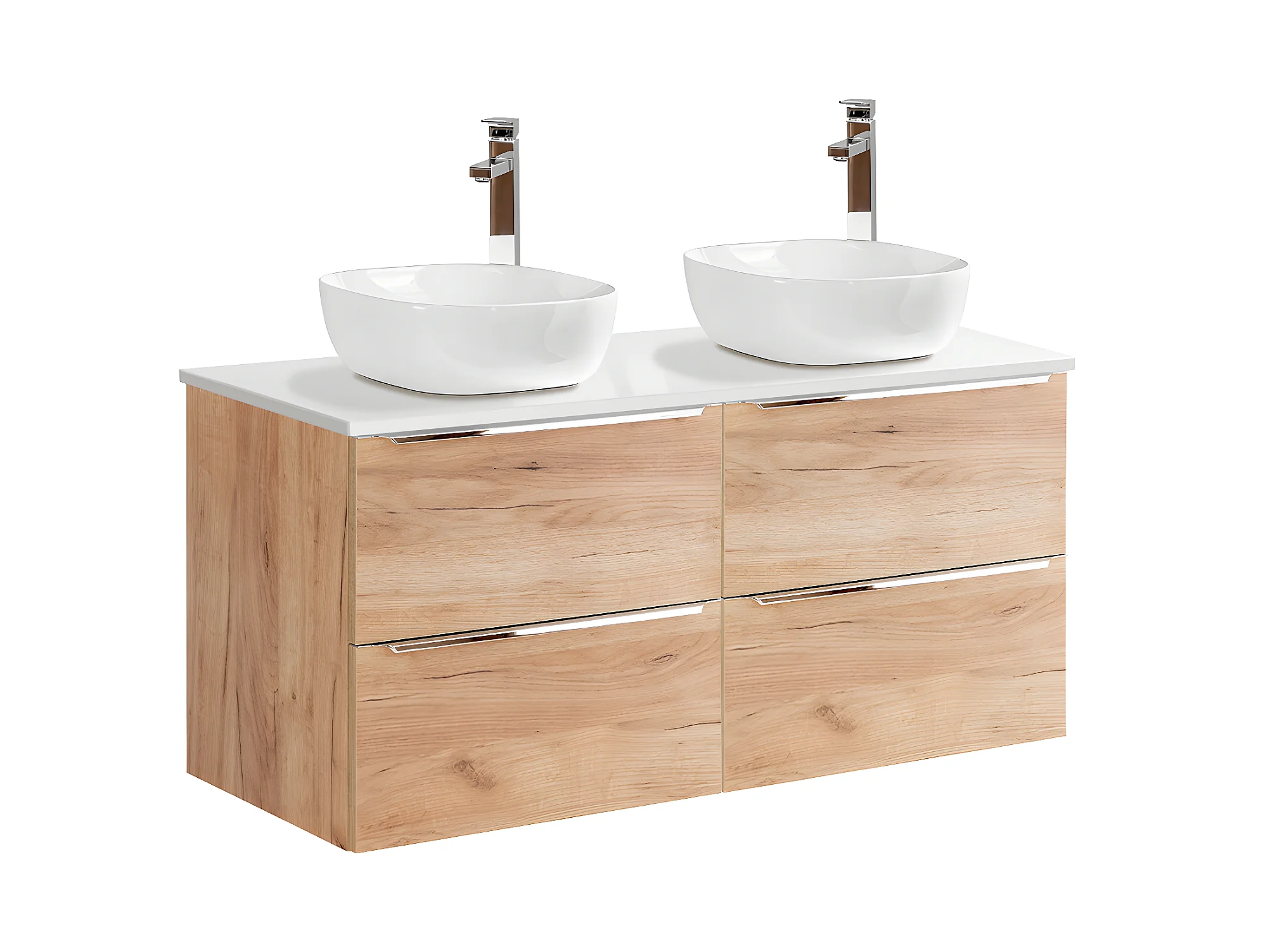 Meuble double vasque encastrée 120cm 4 tiroirs Elora Beige et bois