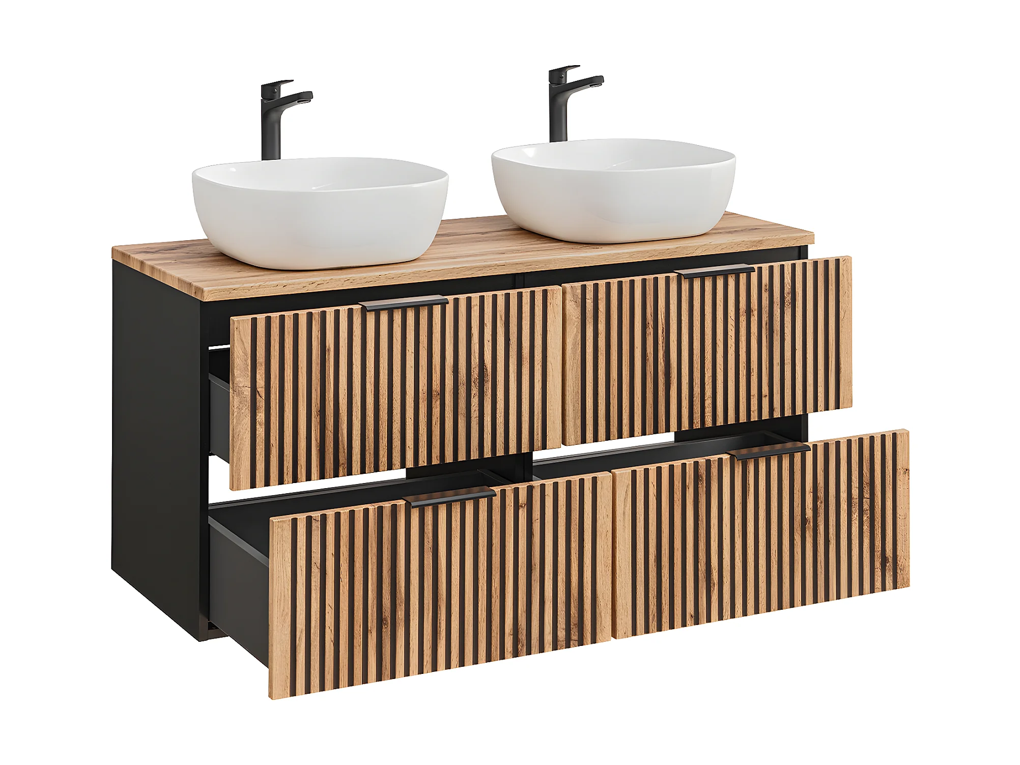 Meuble double vasque 120cm 4 tiroirs Riva Noir et Bois