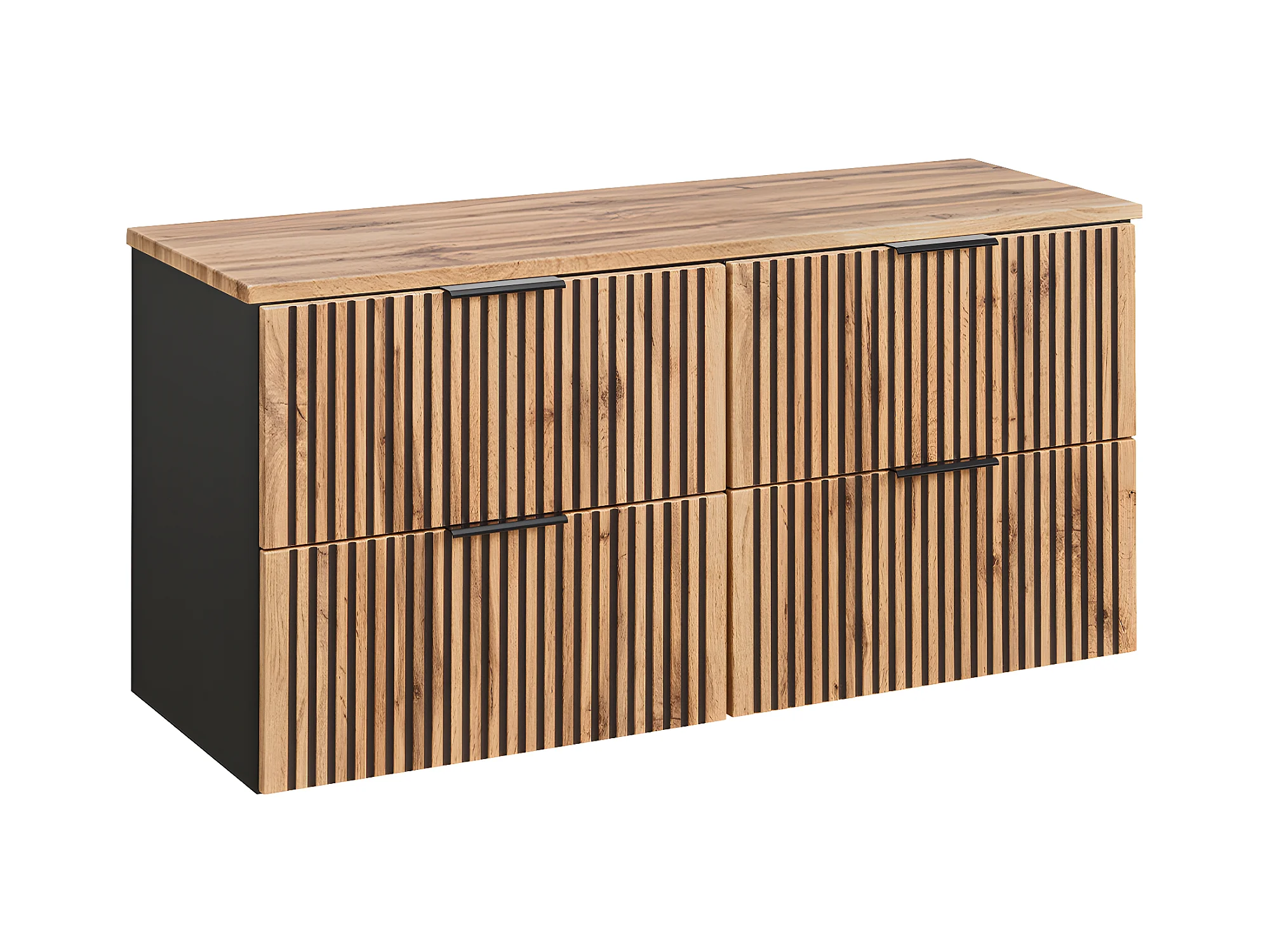 Meuble double vasque 120cm 4 tiroirs Elora Noir et bois Cloud