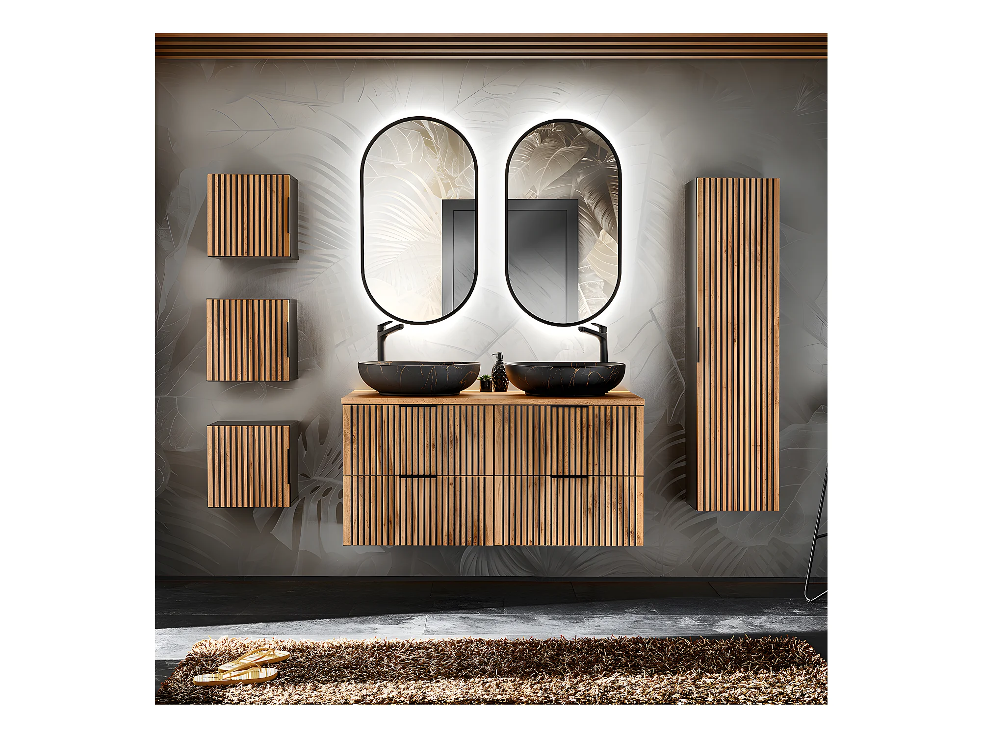 Meuble double vasque 120cm 4 tiroirs Elora Noir et bois