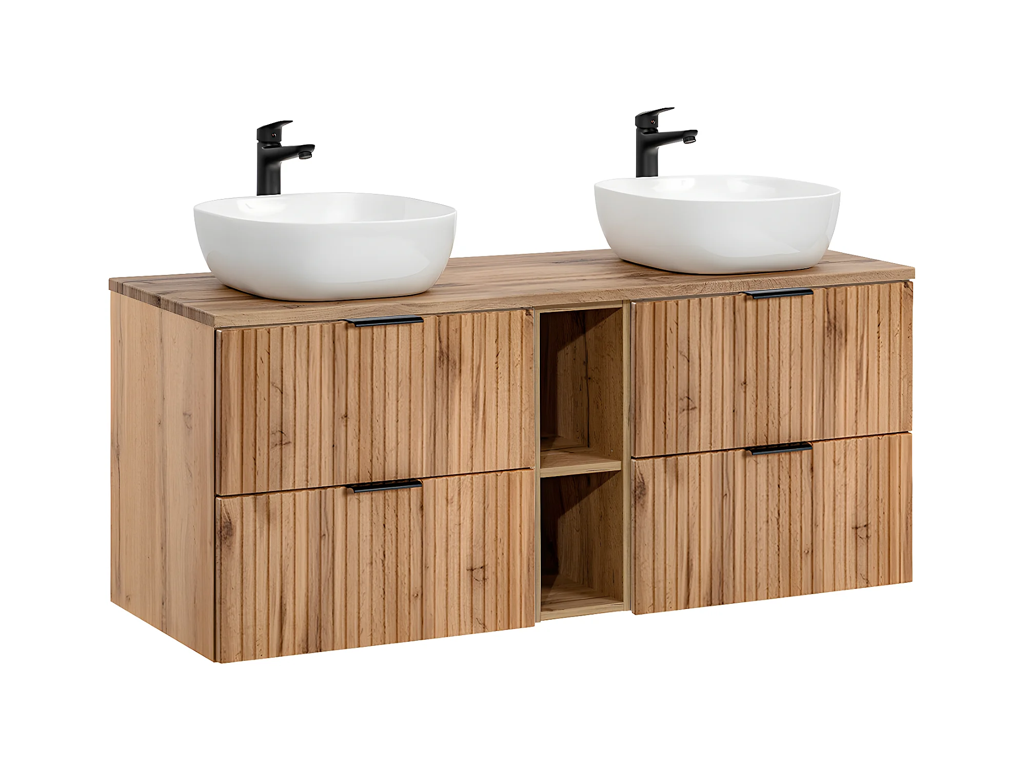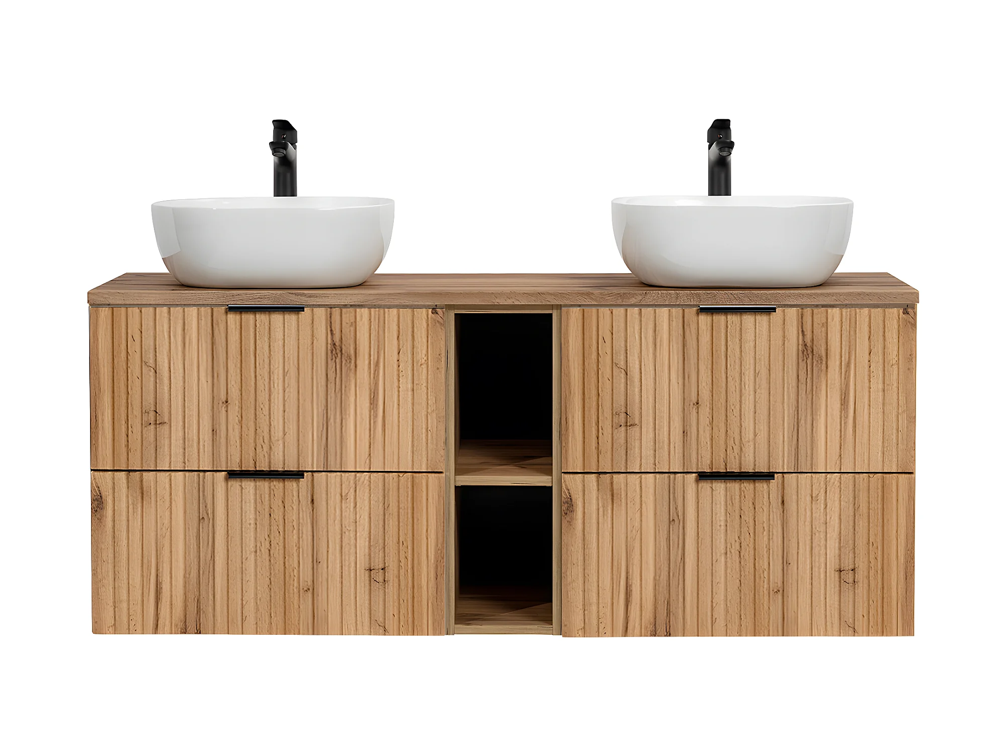 Meuble double vasque 140cm 2 niches Adriel Bois