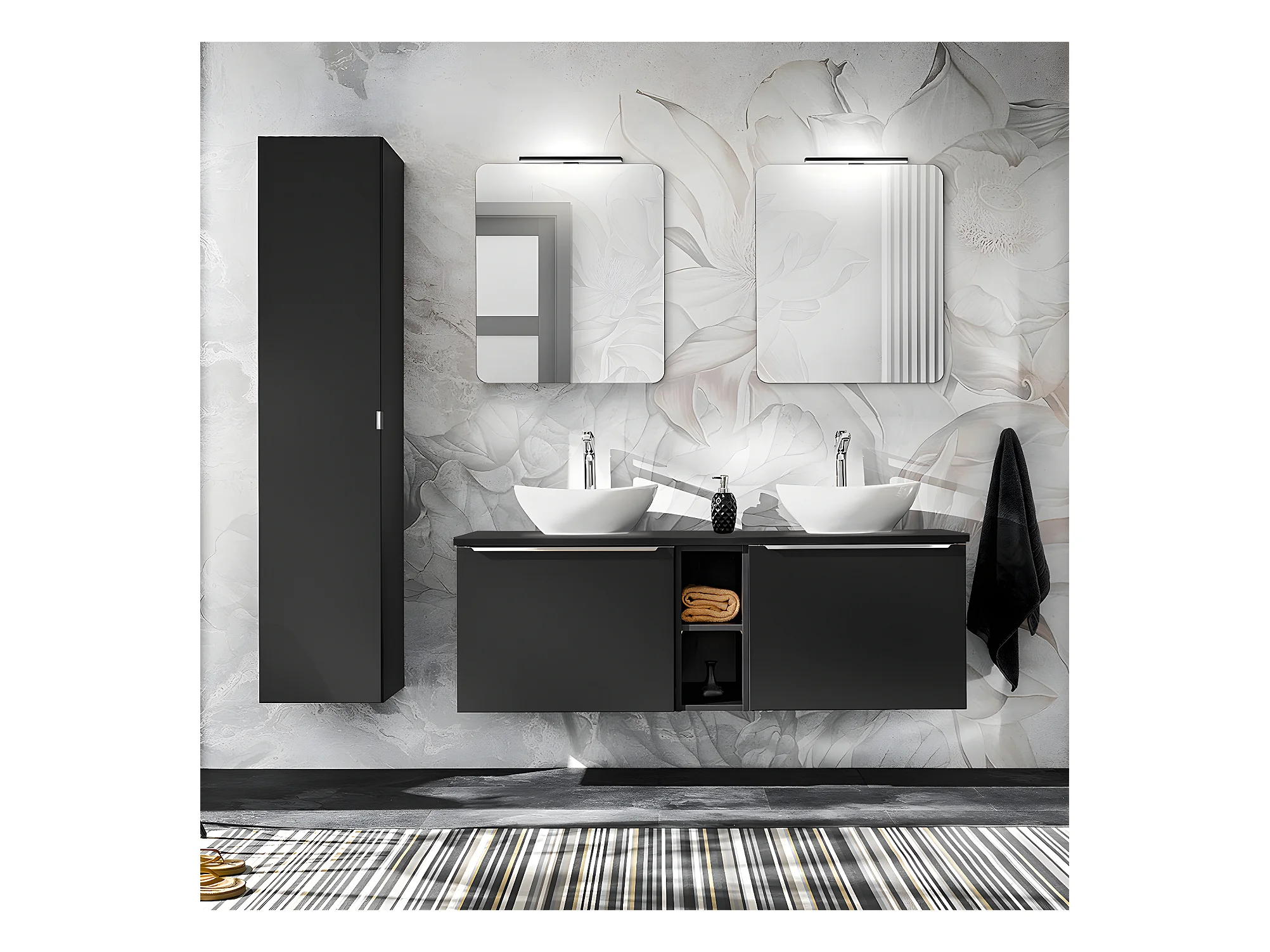 Meuble double vasque 140cm 2 niches Éros Noir
