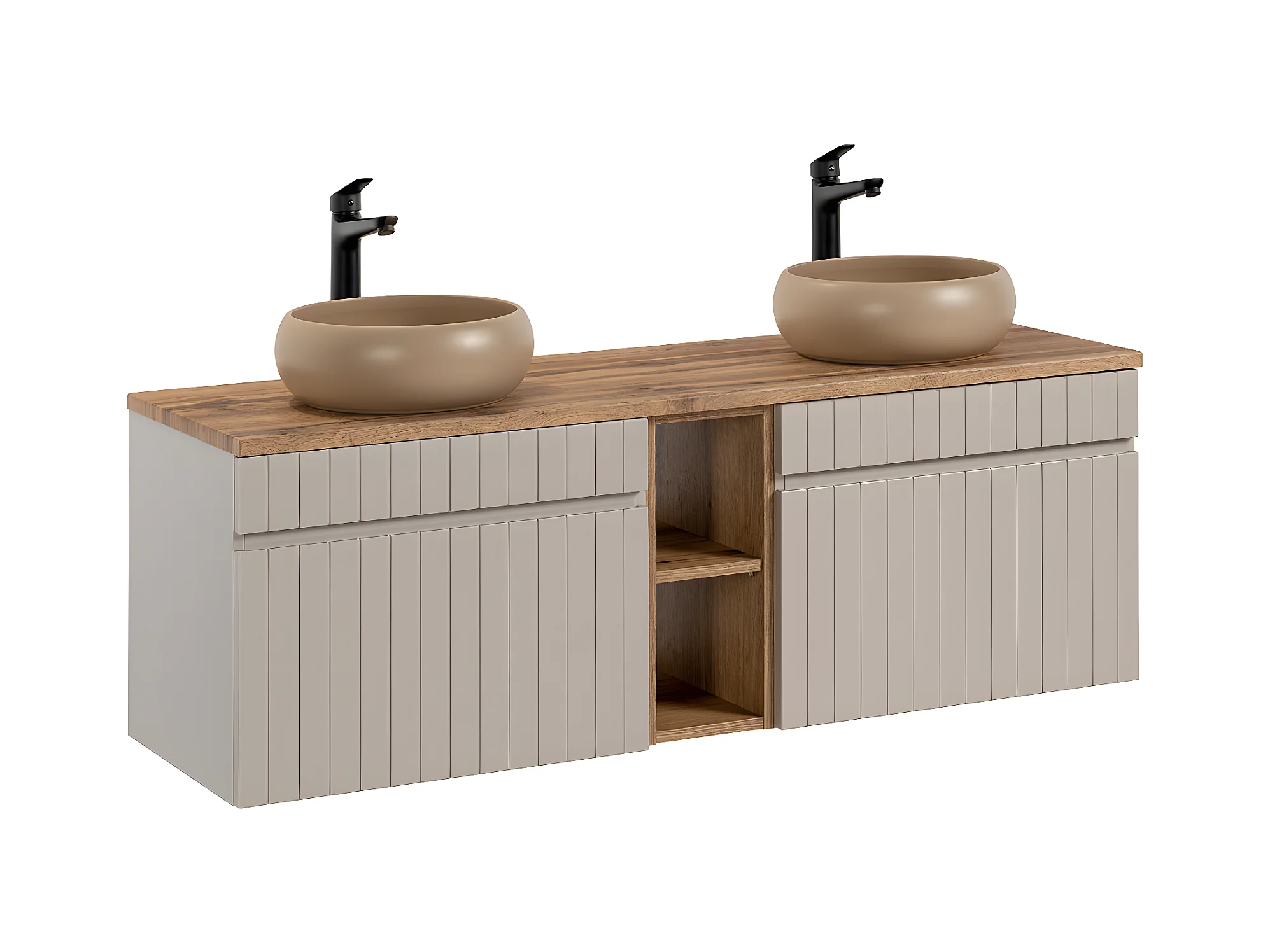 Meuble double vasque 140cm 4 tiroirs Riva Cachemire et Bois