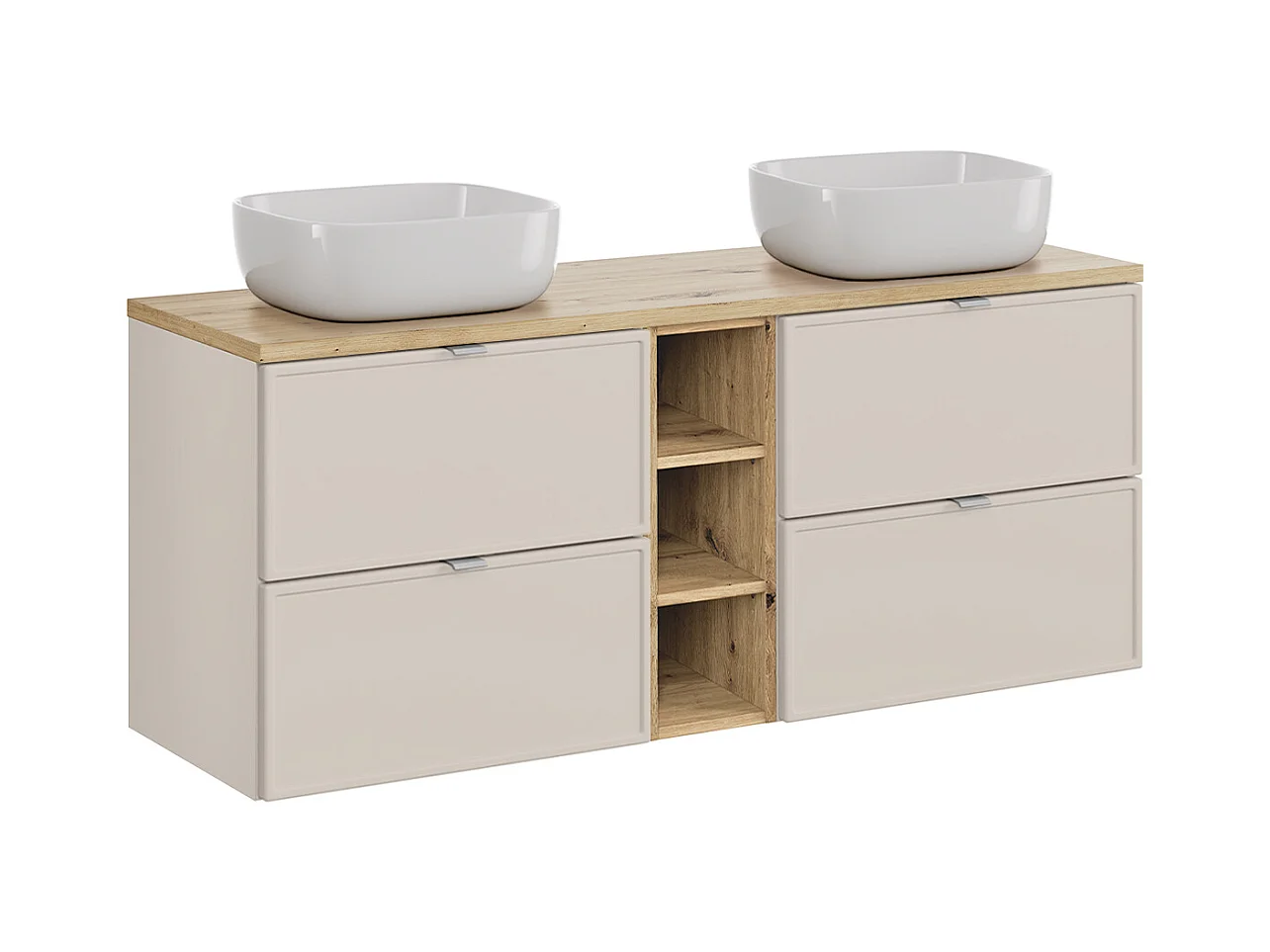 Meuble double vasque 140cm 4 tiroirs Riva Cachemire et Bois