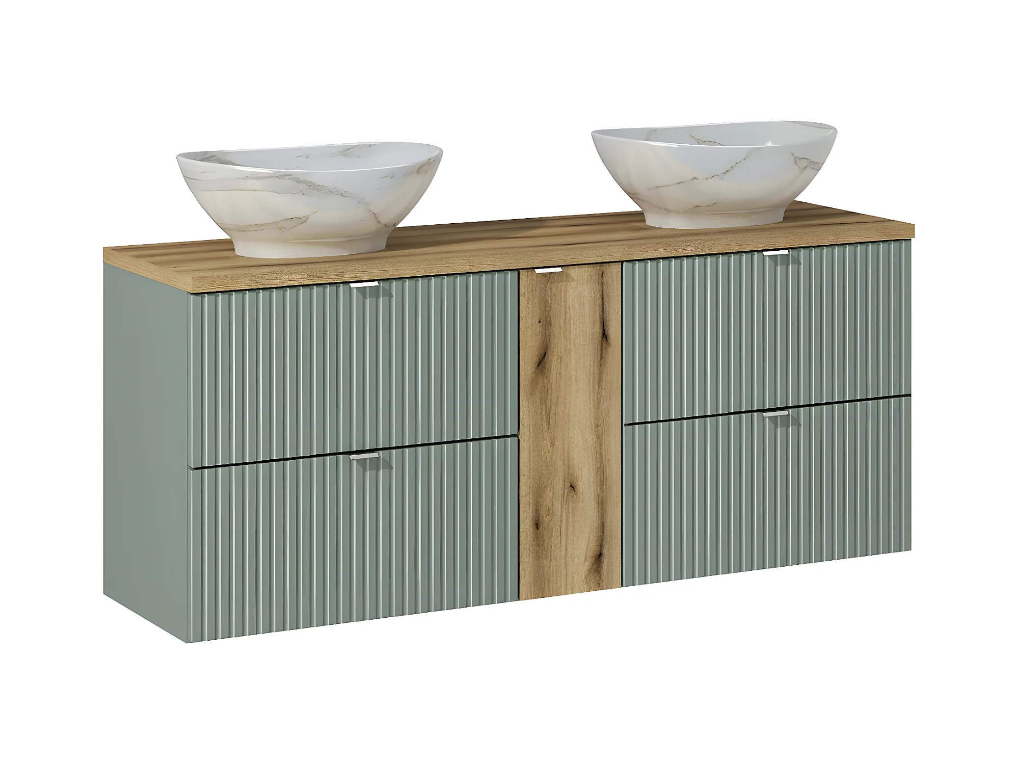 Meuble double vasque 140cm 4 tiroirs Jade Vert et Bois