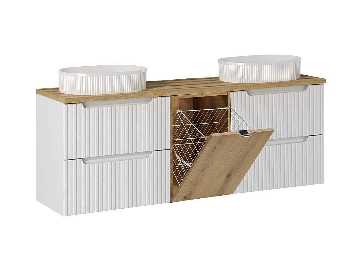 Meuble double vasque 160cm panier à linge Riva Blanc et Bois