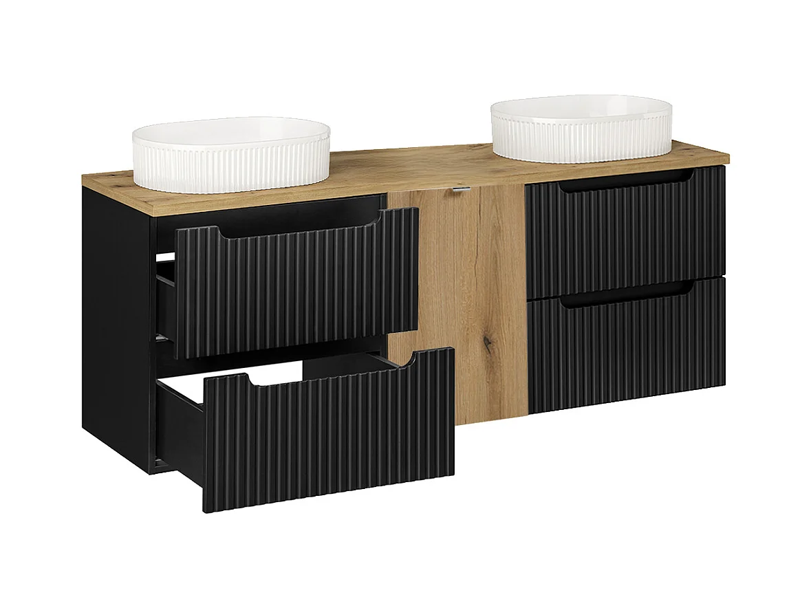 Meuble double vasque 140cm 4 tiroirs Riva Noir et Bois