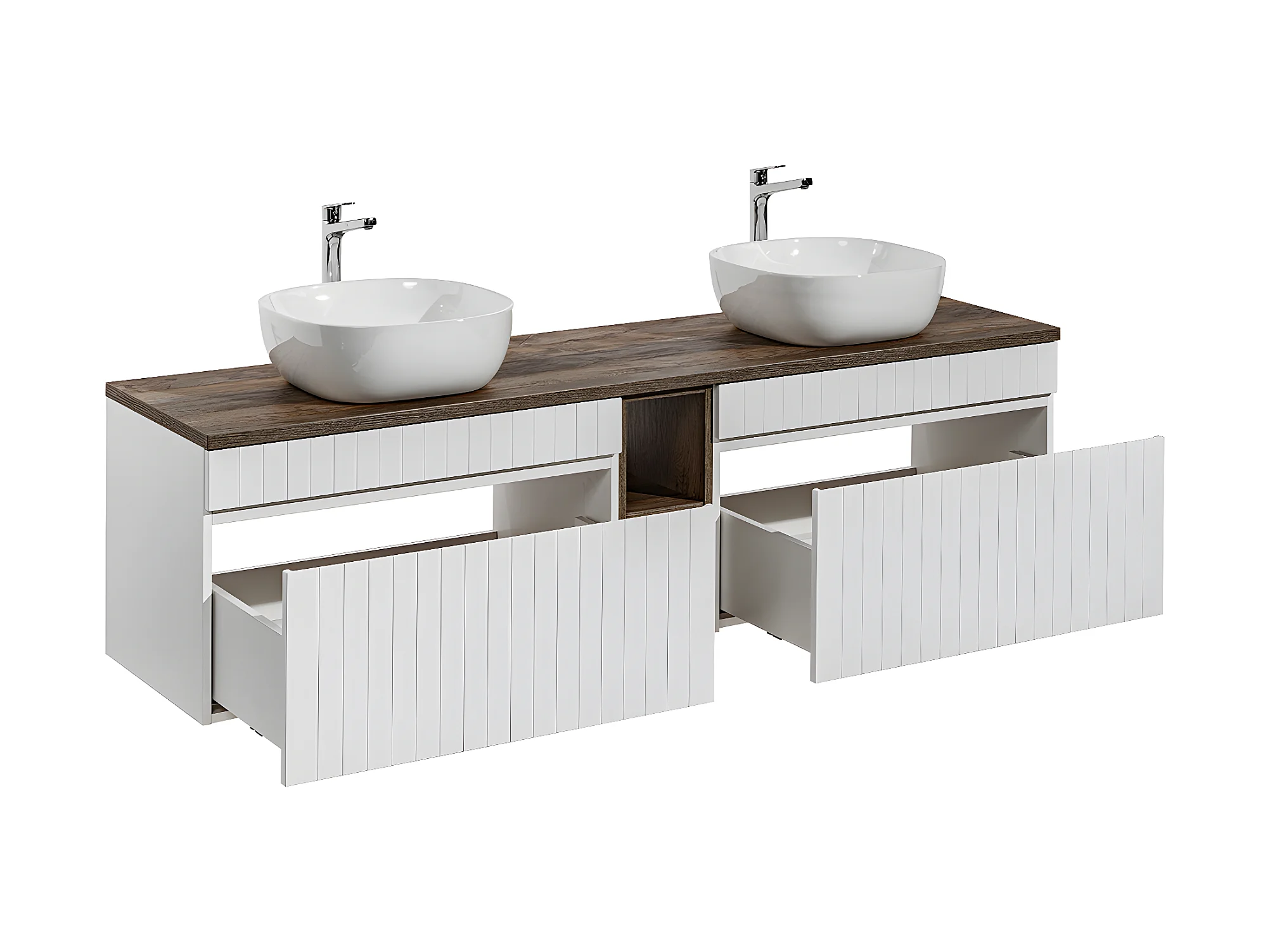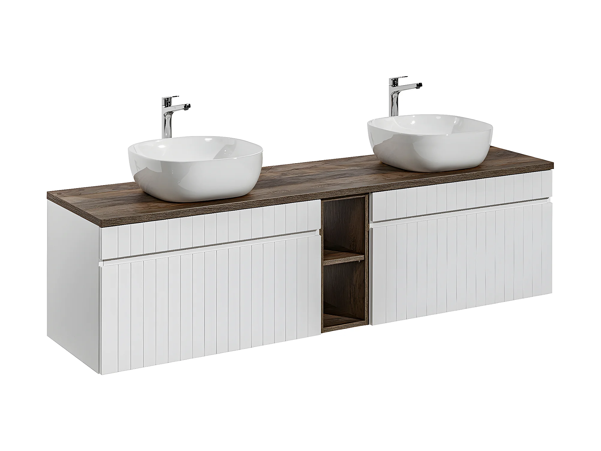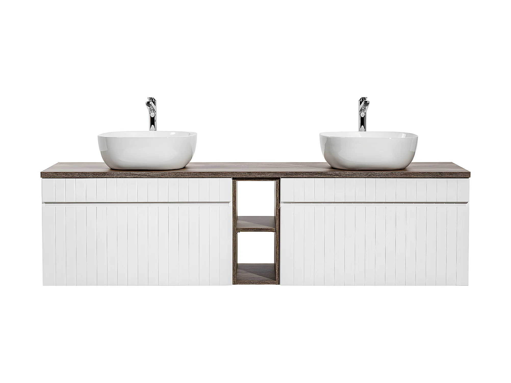 Meuble double vasque 180cm 2 niches Zelie Blanc et Bois
