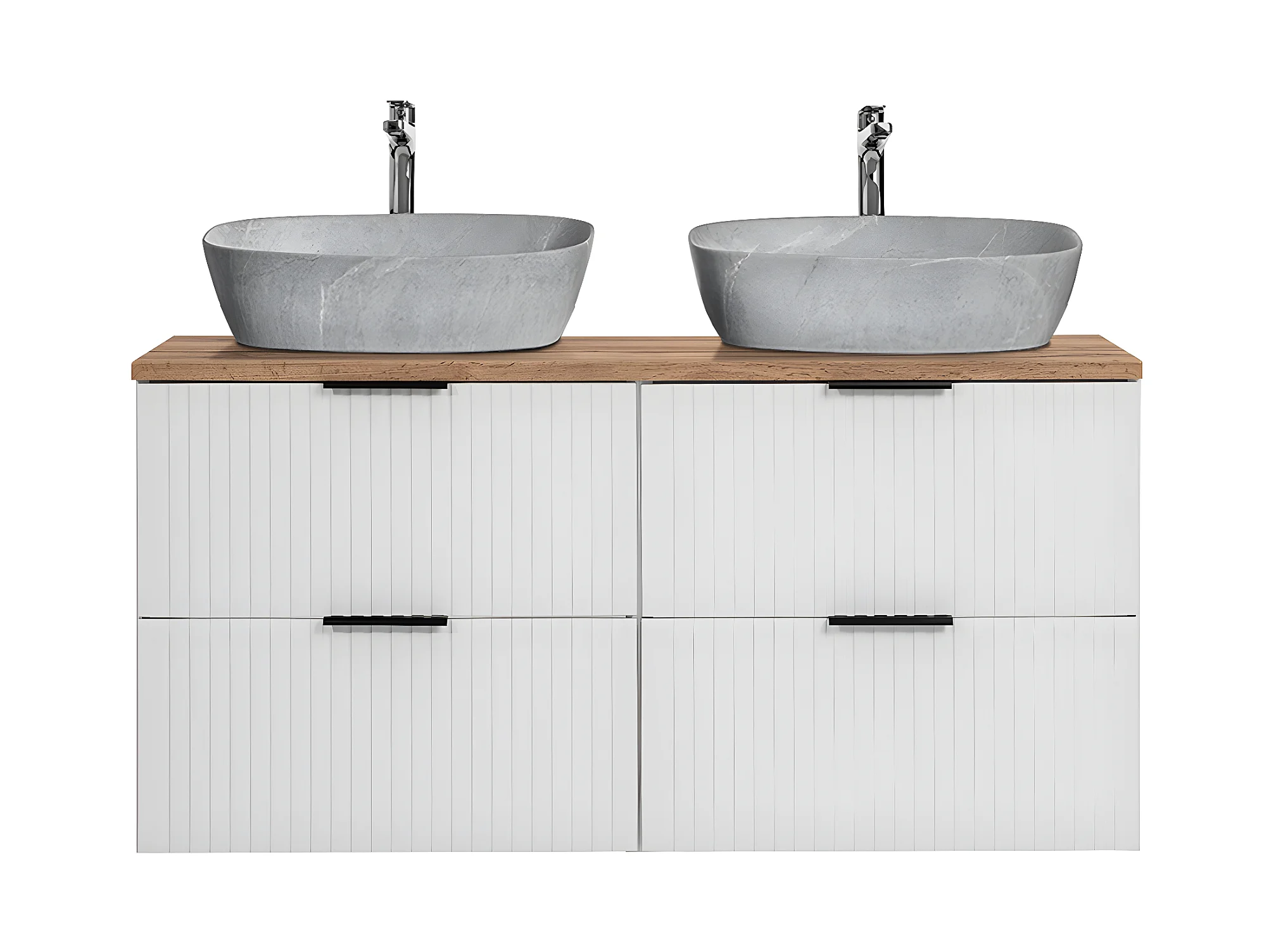 Meuble double vasque effet pierre 120cm Adriel Blanc