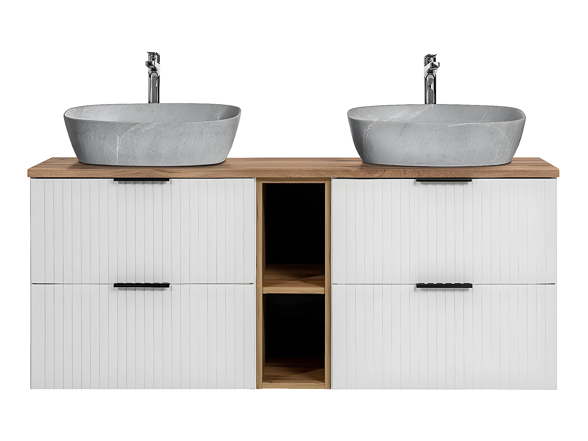 Meuble double vasque 140cm 2 niches April Blanc et Bois