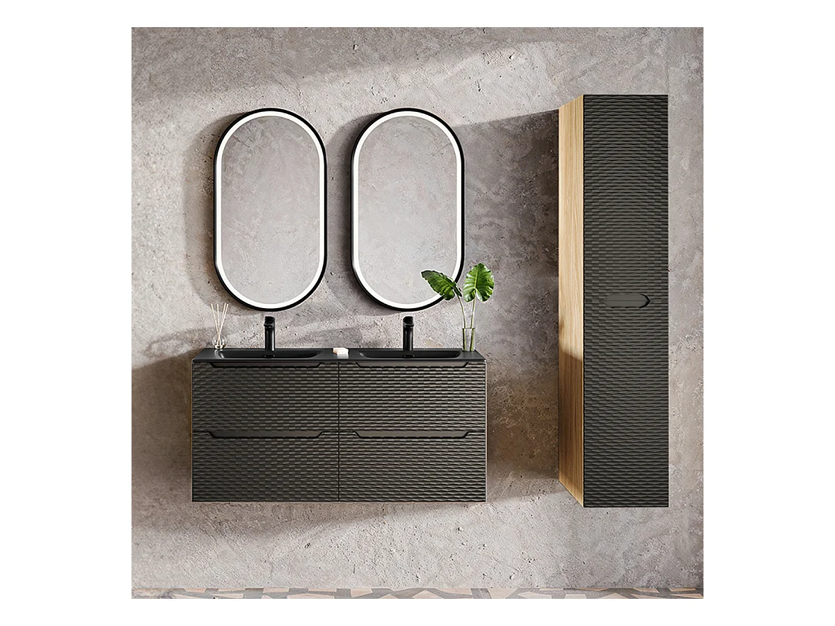 Meuble double vasque 120cm 4 tiroirs Riva Noir et Bois