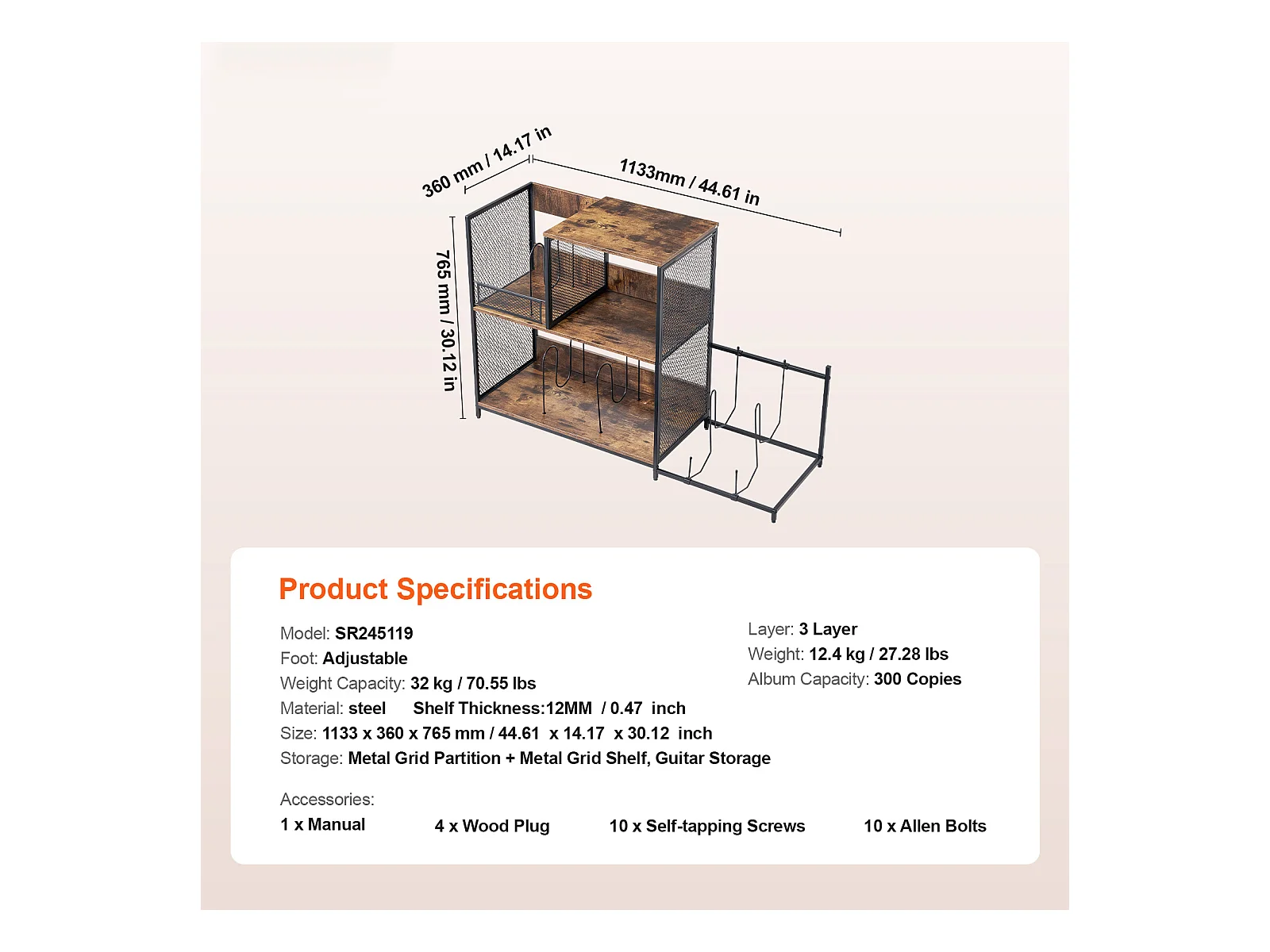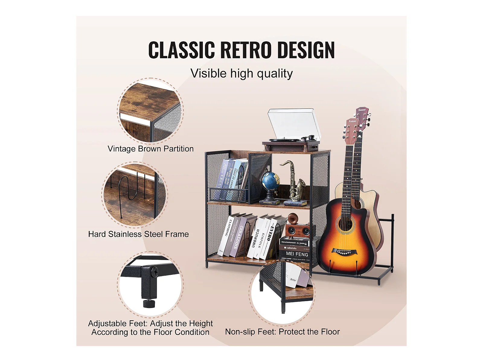 Meuble DVD SucceBuy Support pour Tourne-Disque, Support pour Platine Vinyle en Métal à 3 Niveaux avec Rangement pour Guitare