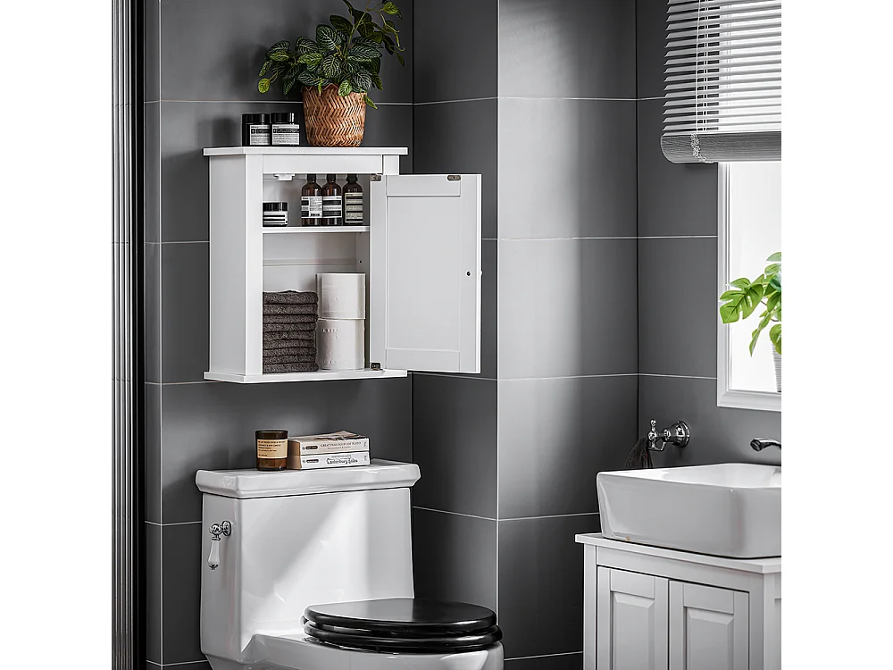 Meuble Haut De Salle De Bain - 1 Porte Placard Commode Meuble De Rangement Mural, Frg203-w