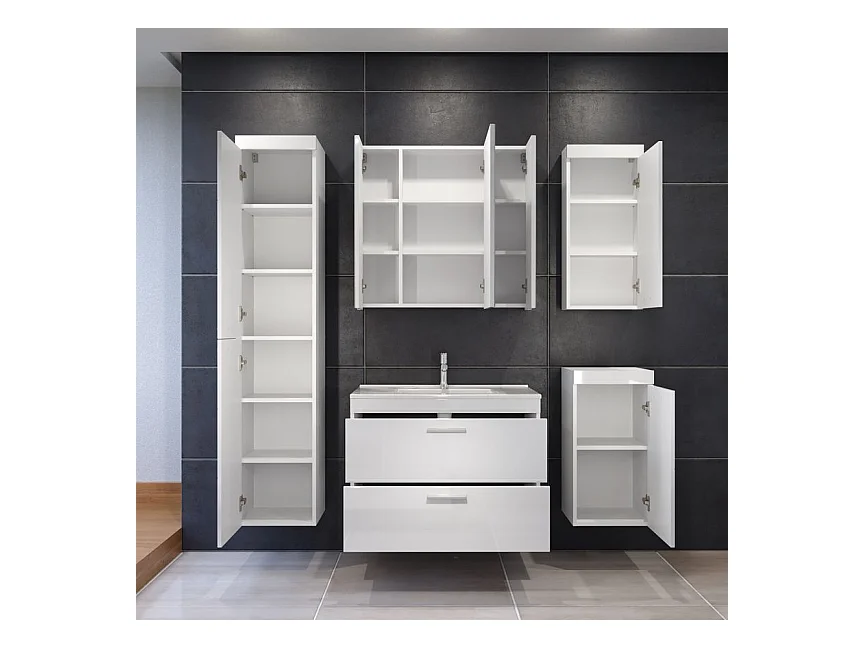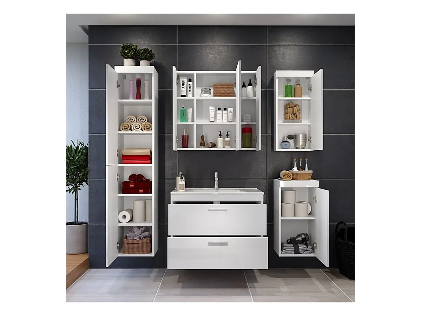Colonne de salle de bain suspendu, collection RAVEN, coloris blanc mat et blanc brillant, idéal pour une salle de bain design