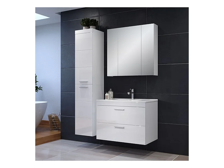 Armoire de salle de bain 2 portes blanc brillant Kelia 73cm