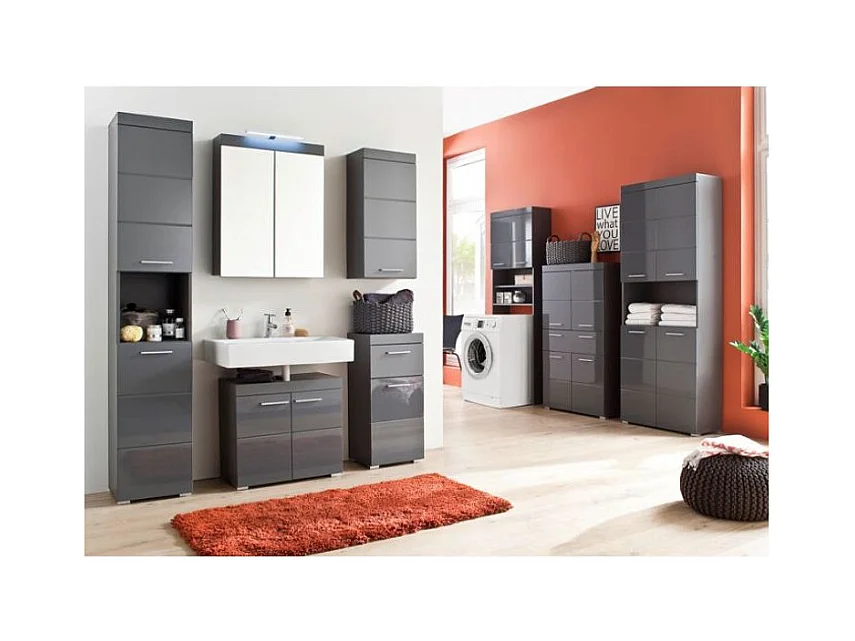 Meuble haut de salle de bain 2 portes gris brillant Kelia 73cm