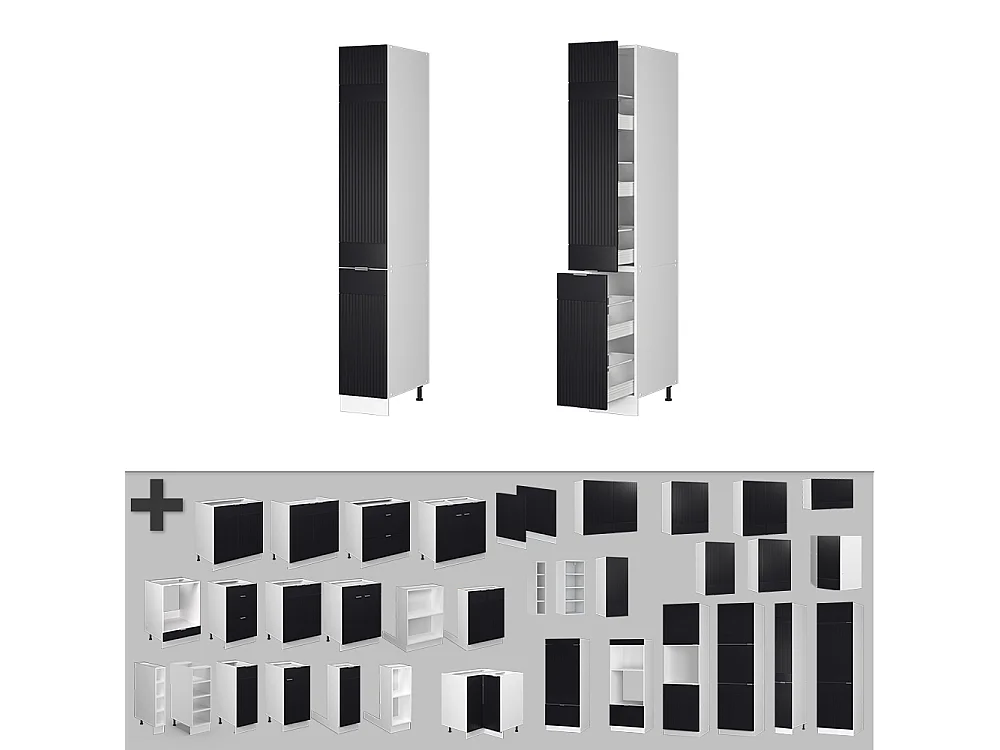 Meuble haute de cuisine noir rayé 30x58x206.8 fame-line