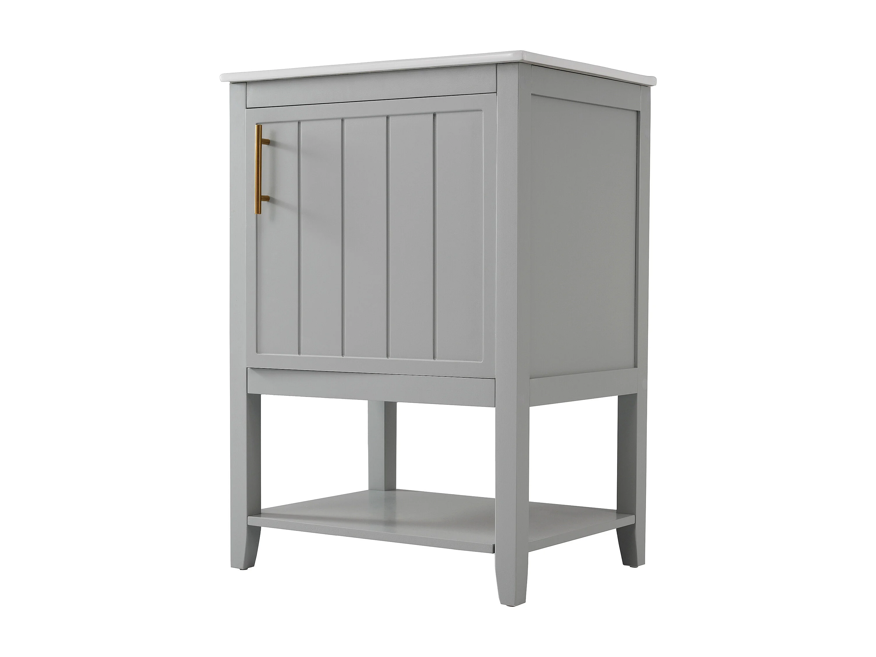 Meuble de salle de bain avec vasque en céramique, design moderne, bois massif et MDF, gris clair et blanc (61x46x90 cm)