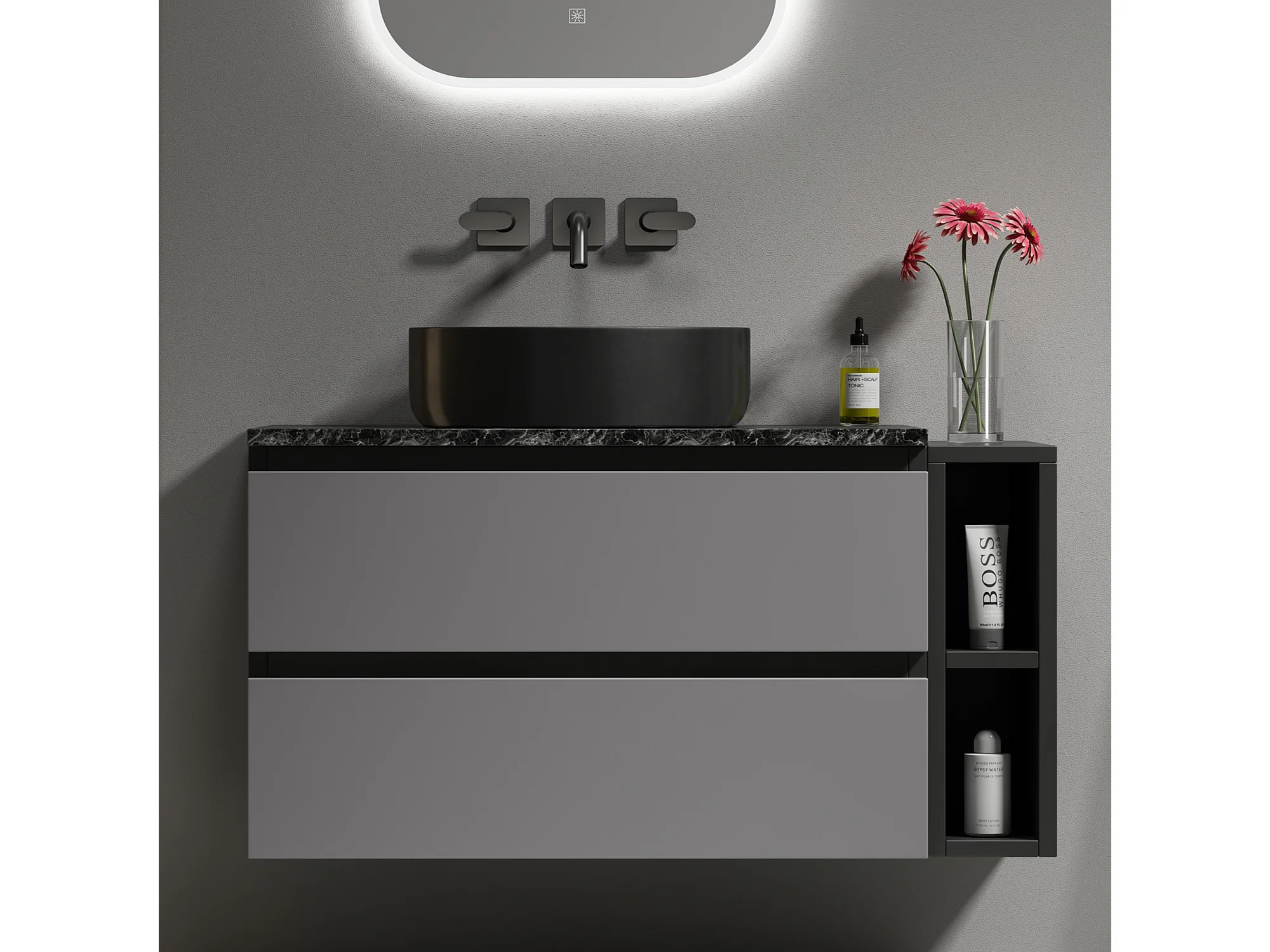 Meuble de salle de bain suspendu strié avec vasque à poser - Noir - L80 cm - ZILGA