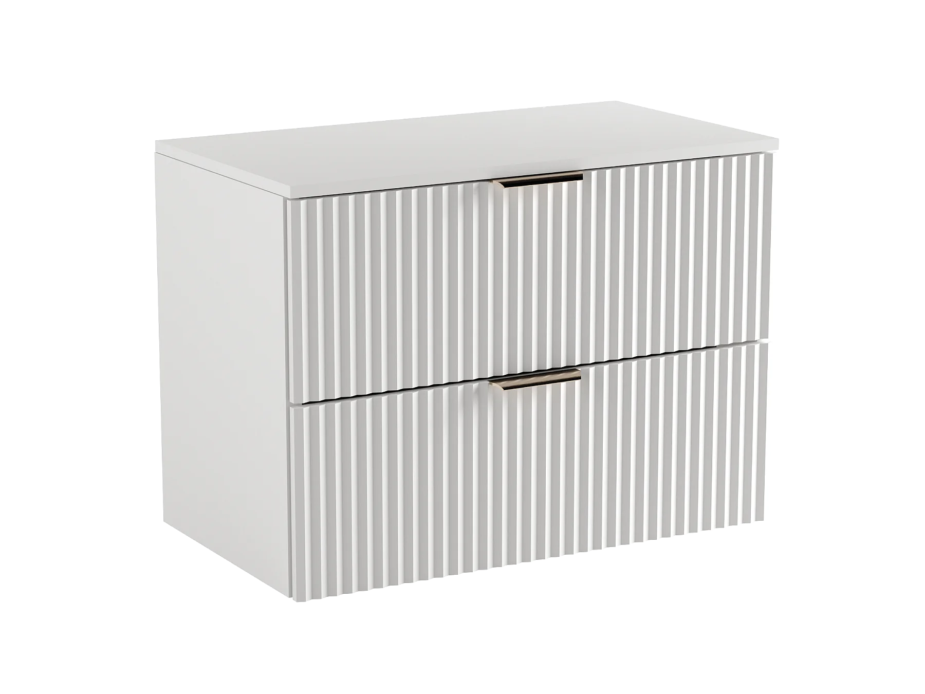 Meuble lavabo WENA, avec étagère, façades cannelées, Willy, 100x60x47 cm, Blanc/Noyer