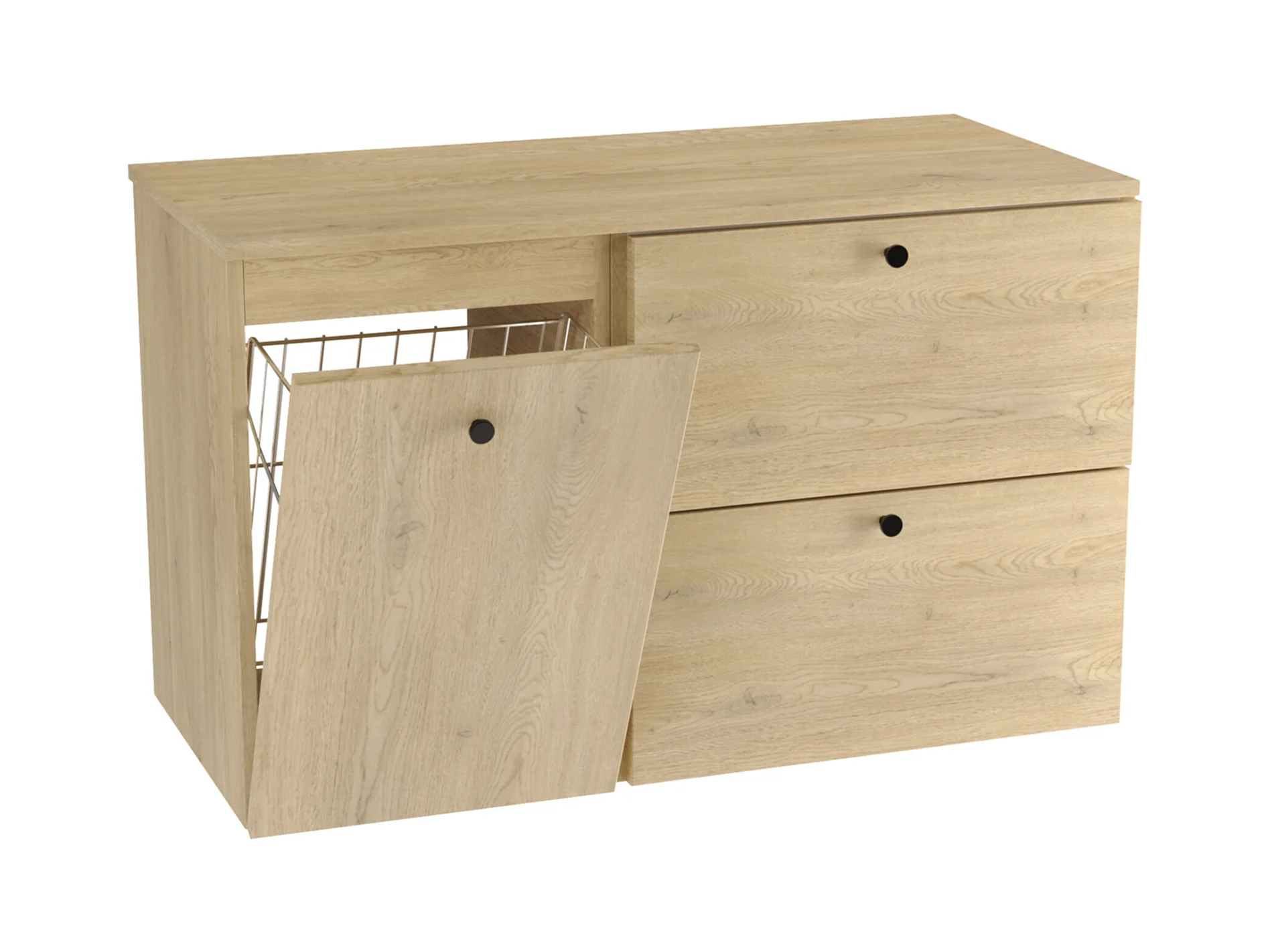 Meuble lavabo WENA, fronts lisses, avec panier à linge, Beti, 100x60x47 cm, Chêne de Crémone