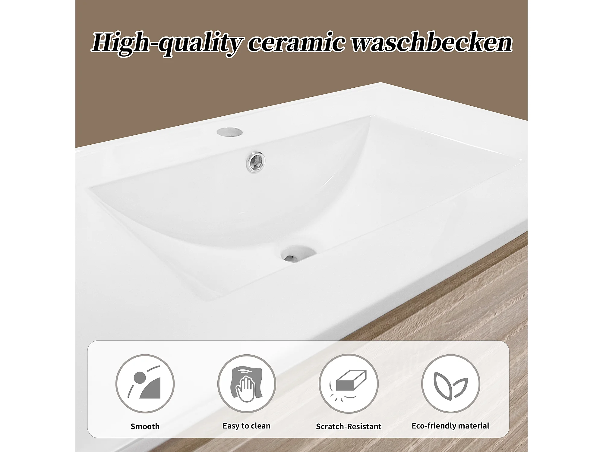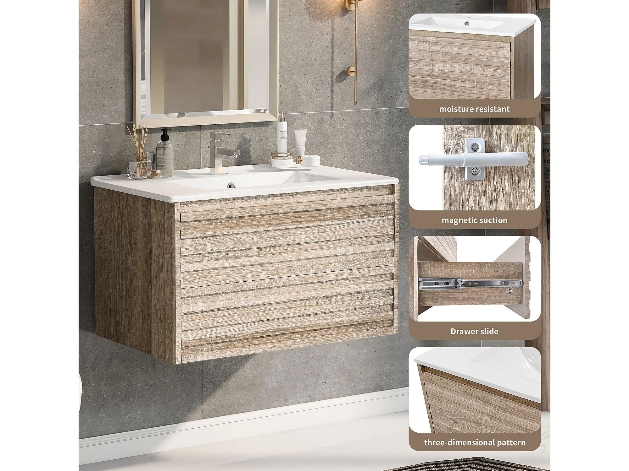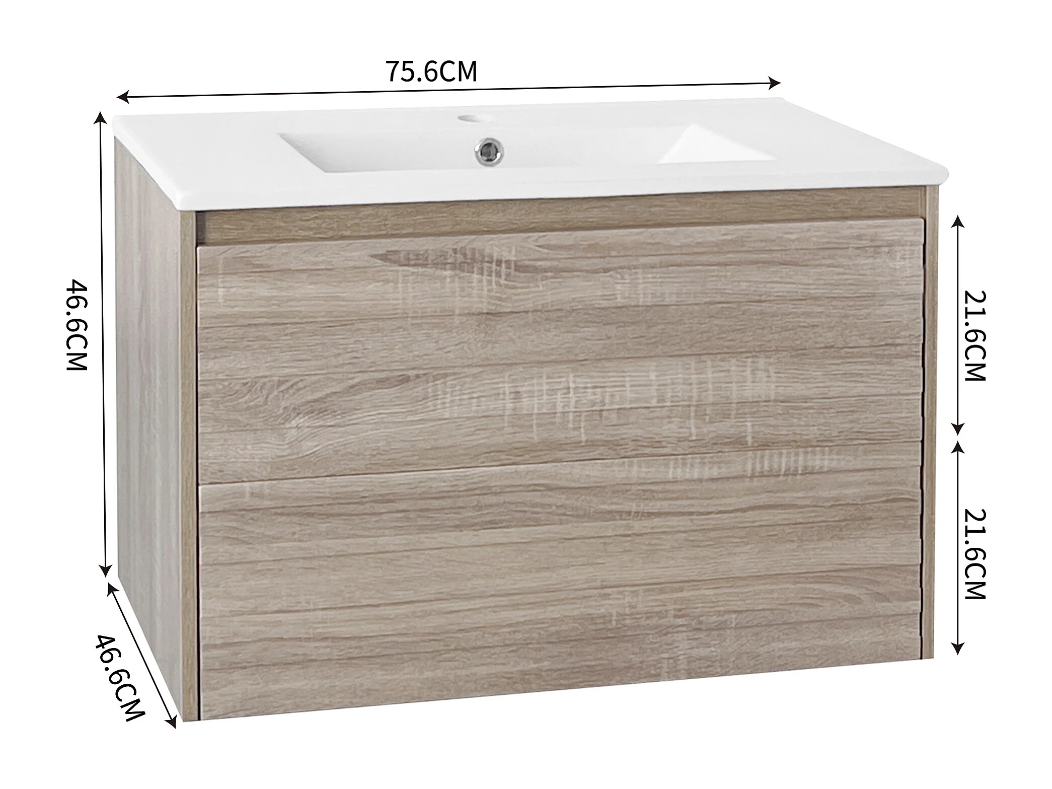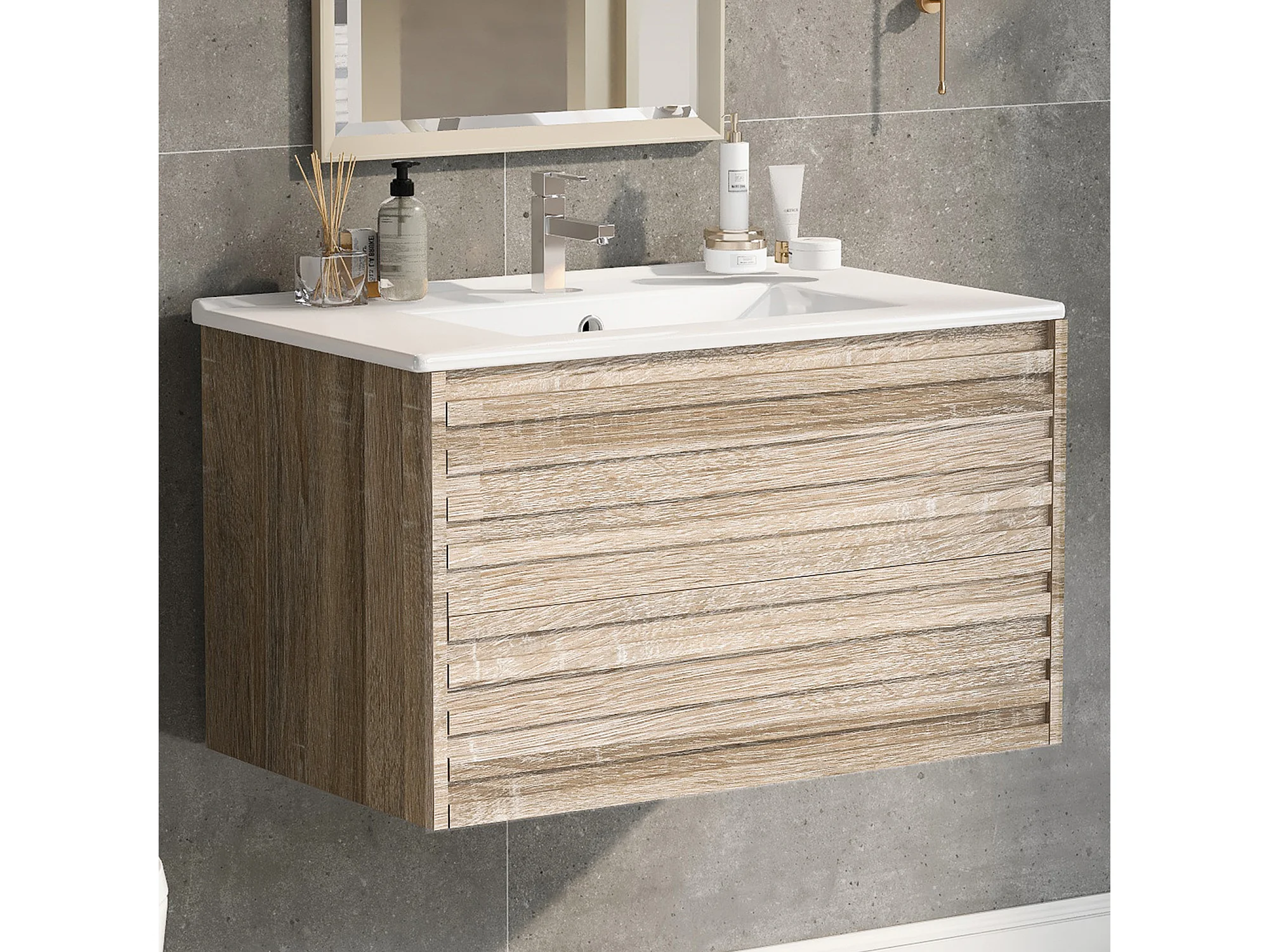 Meuble lave-main suspendu avec une porte et 1 tiroir - simple vasque - 76 x 47 x 47 cm - bois MDF - naturel clair