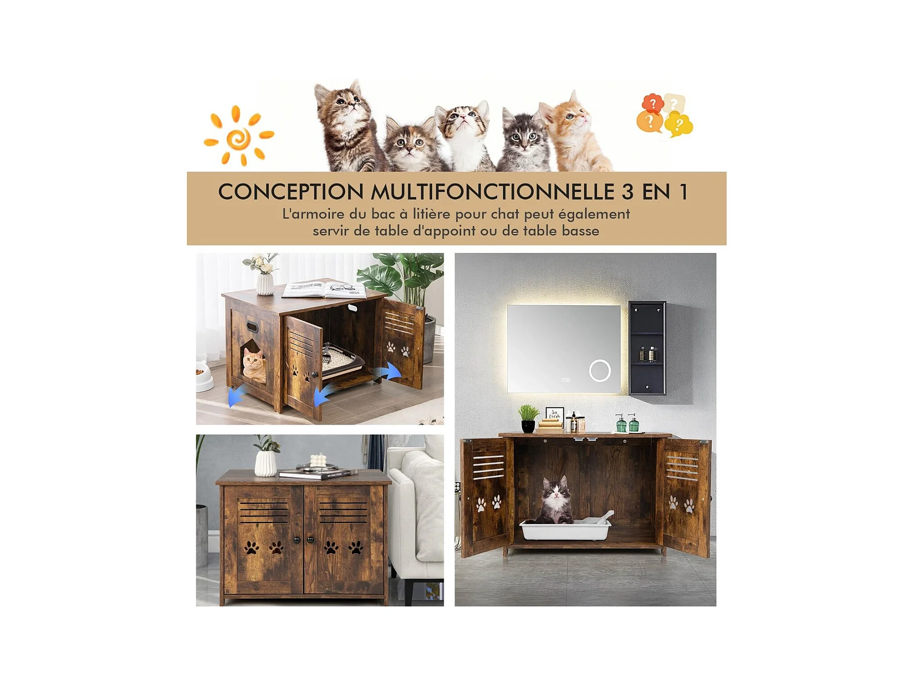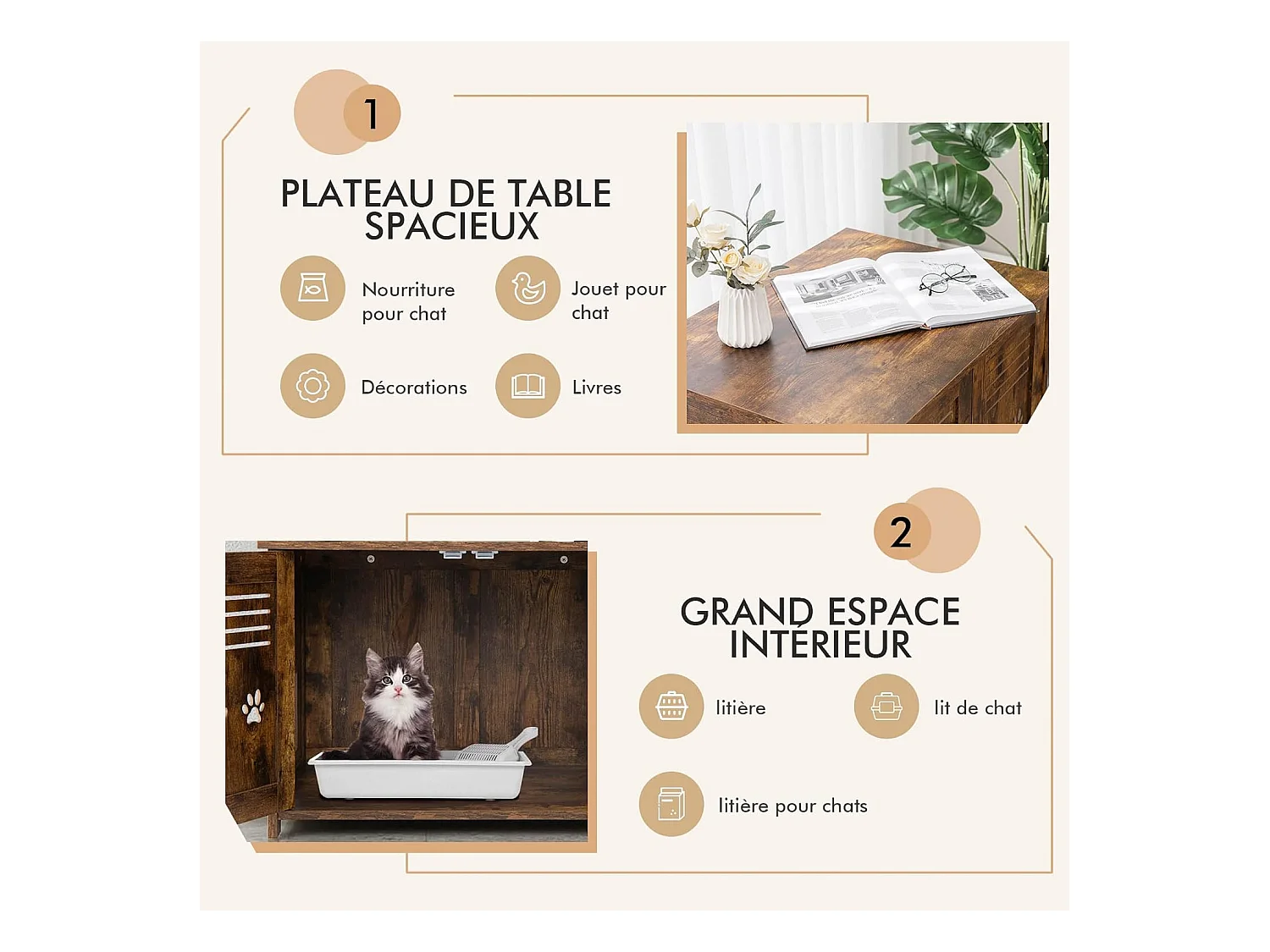 Meuble Litiere Chat Griffoir Amovible Industriel, 89x45x74,5cm Café