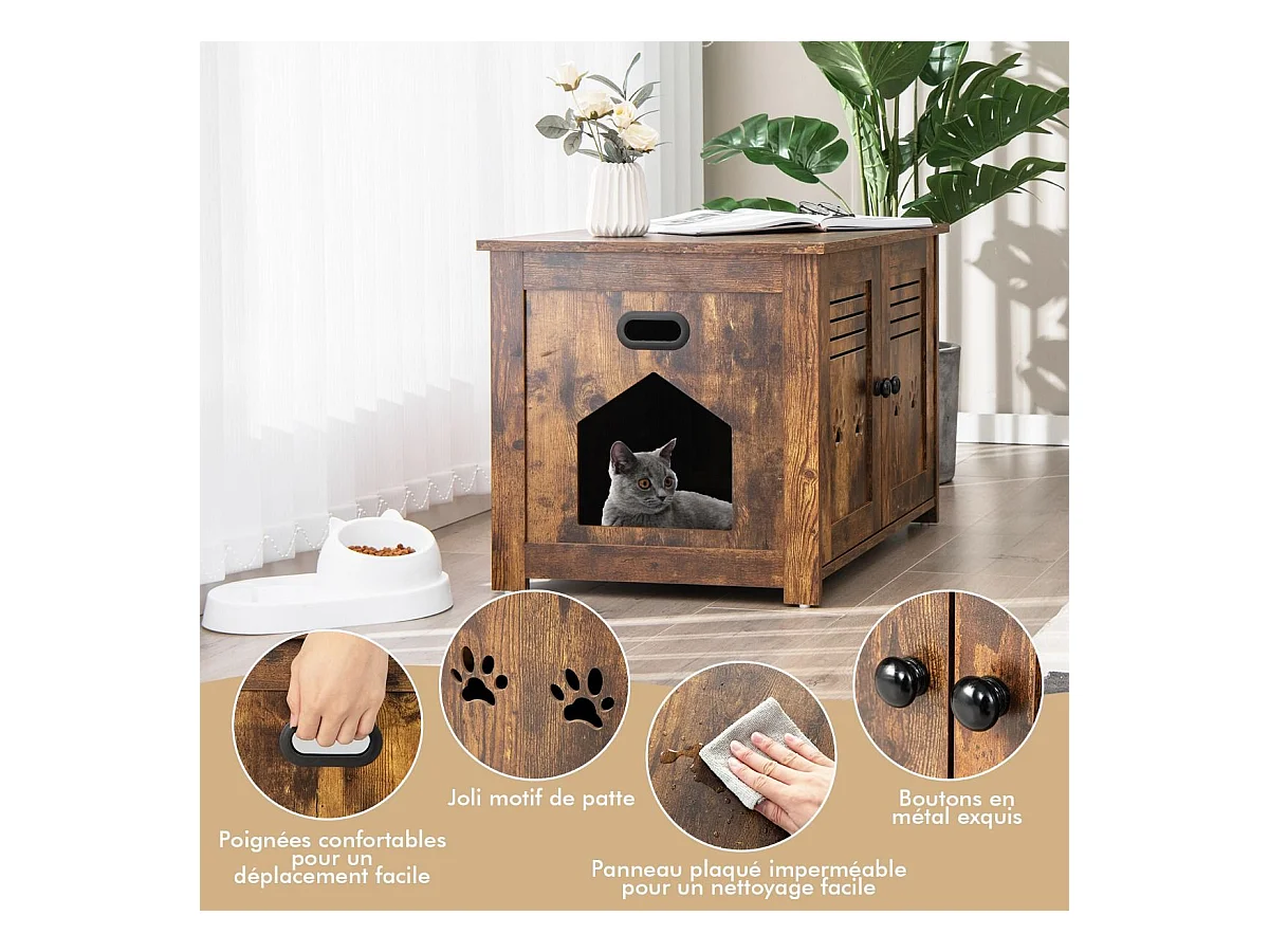 Maison de Toilette pour Chat à Double Portes, 80x50x57cm