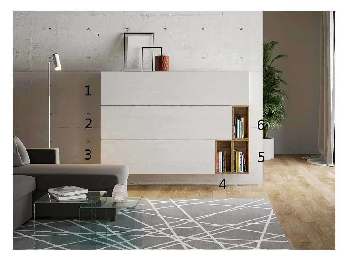 Meuble modulable fixe ou suspendu blanc et chênes clair Ela - 6 piéces