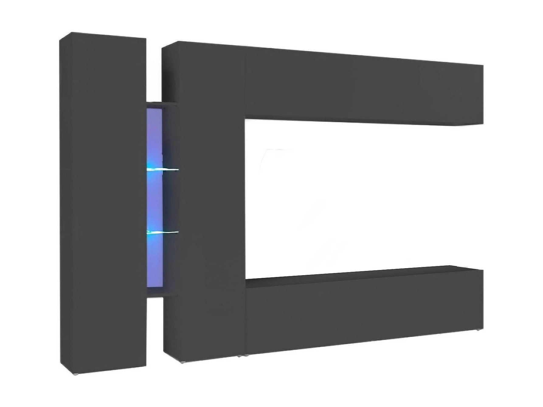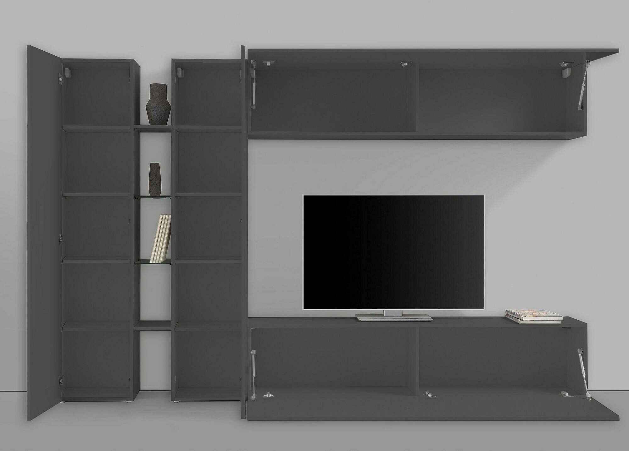 Système mural Carmelo, ensemble de salon meuble TV 5 portes, meuble de salon polyvalent, 100% Made in Italy, 340x30h180 cm, Anthracite