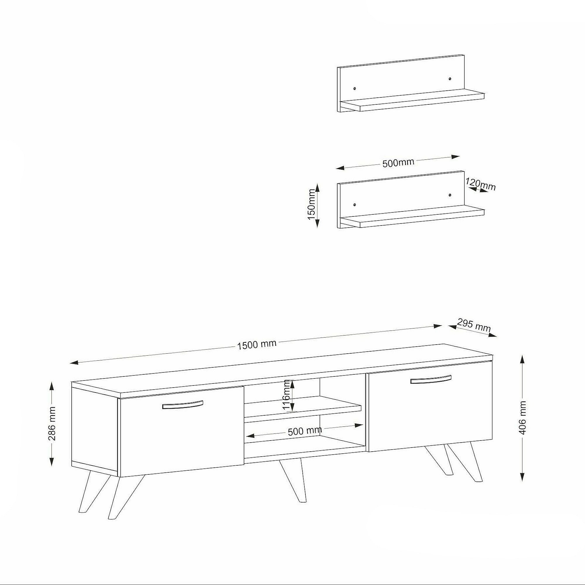 Meuble Mural Dagostinell, Composition du salon, Meubles de salon polyvalents, Meuble télé, 150x30 h41 cm, Noyer et Gris