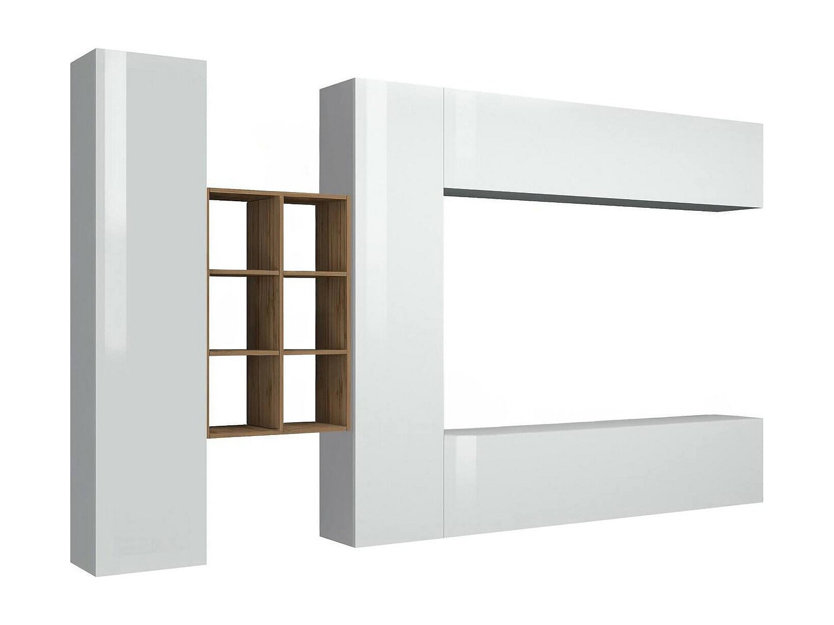 Élément mural Luigi, meuble TV 4 portes, meuble de salon polyvalent, 100% Made in Italy, 260x30h180 cm, Blanc brillant