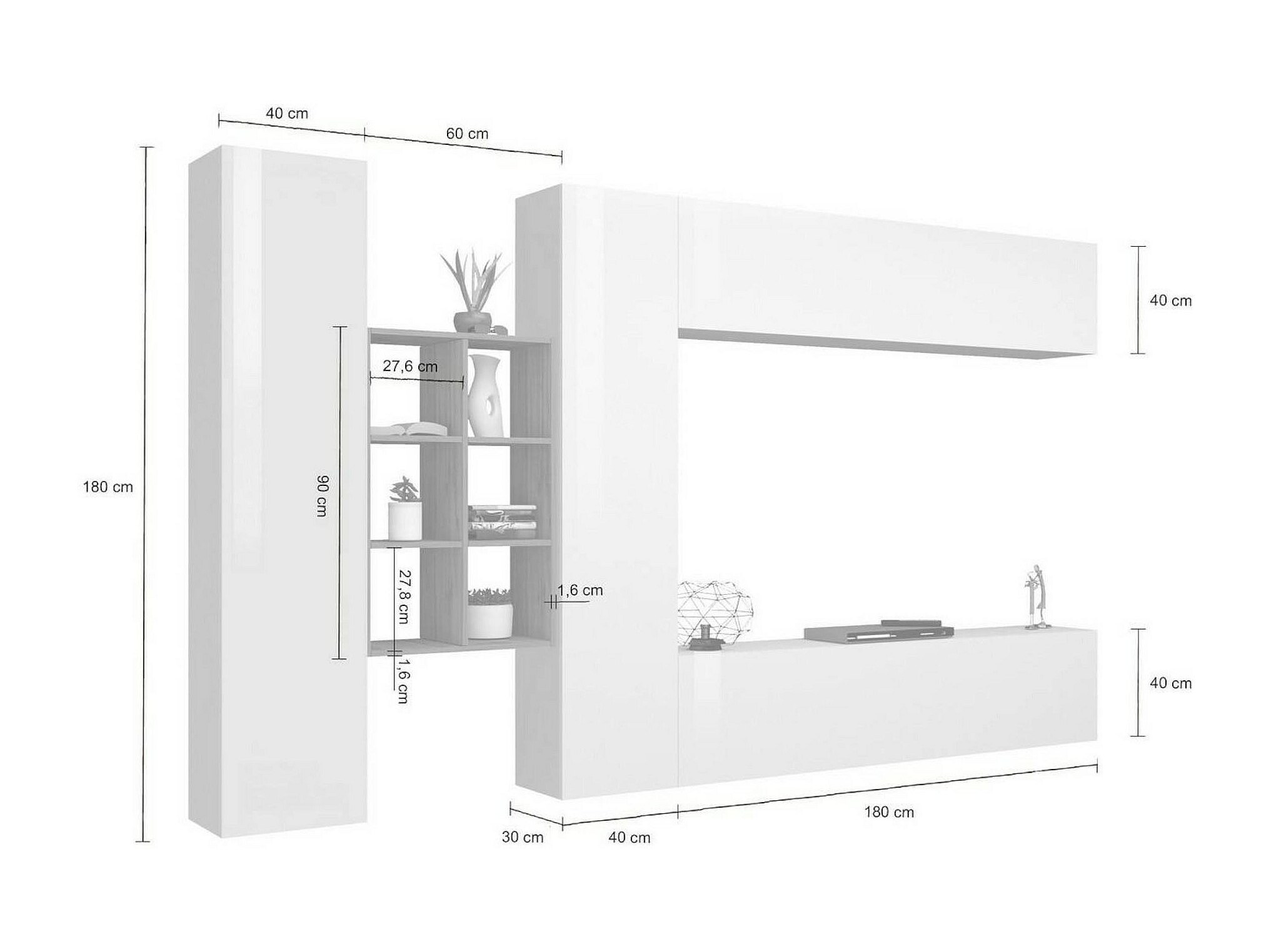 Système mural Giordano, meuble TV 3 portes, meuble de salon polyvalent, 100% Made in Italy, 260x30h180 cm, Blanc brillant
