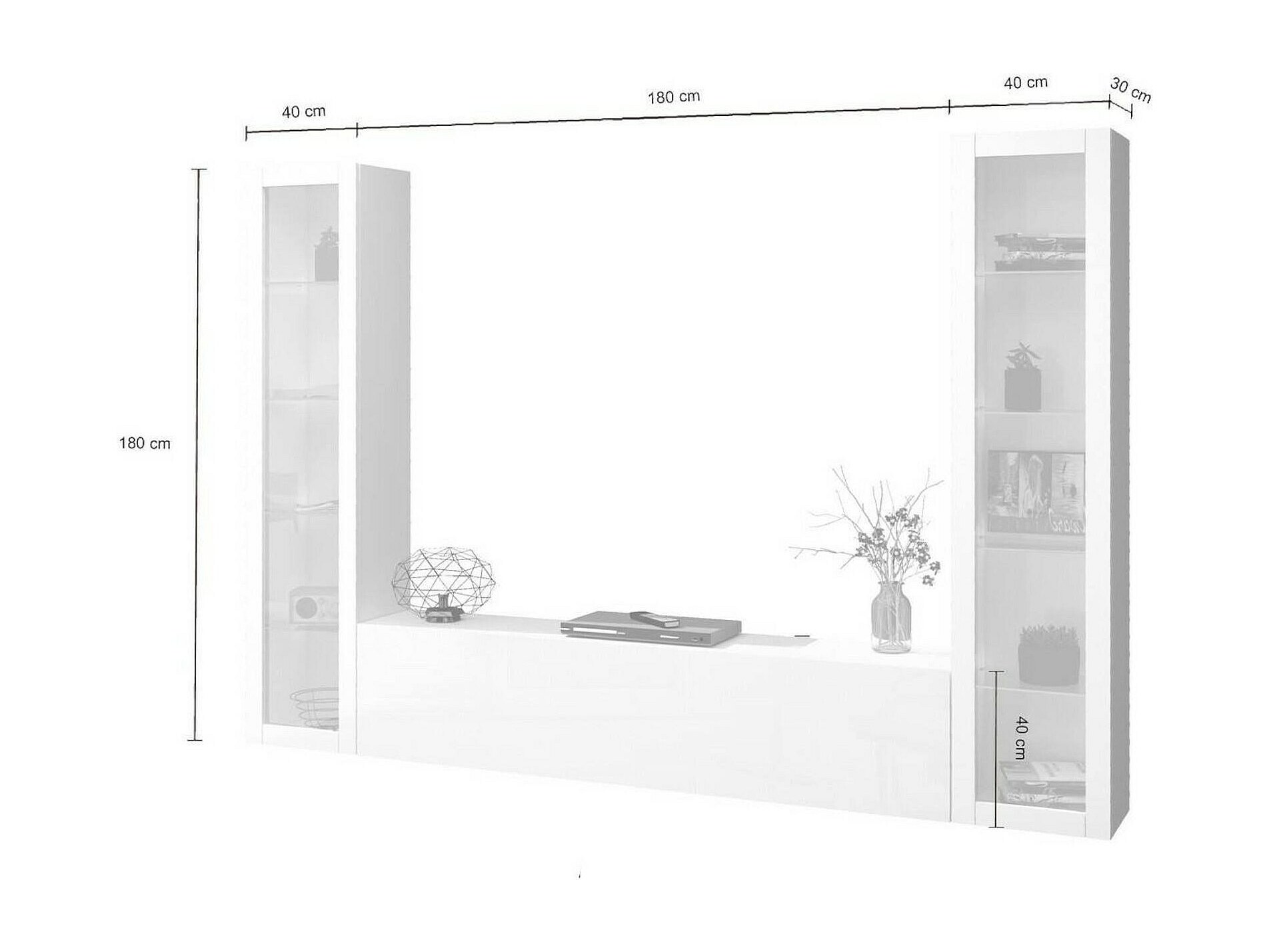 DIMENSIONS EN CM - Meuble TV : 180x30h40 - Colonnes : 40x30h180 - Etagère : 20x27h5