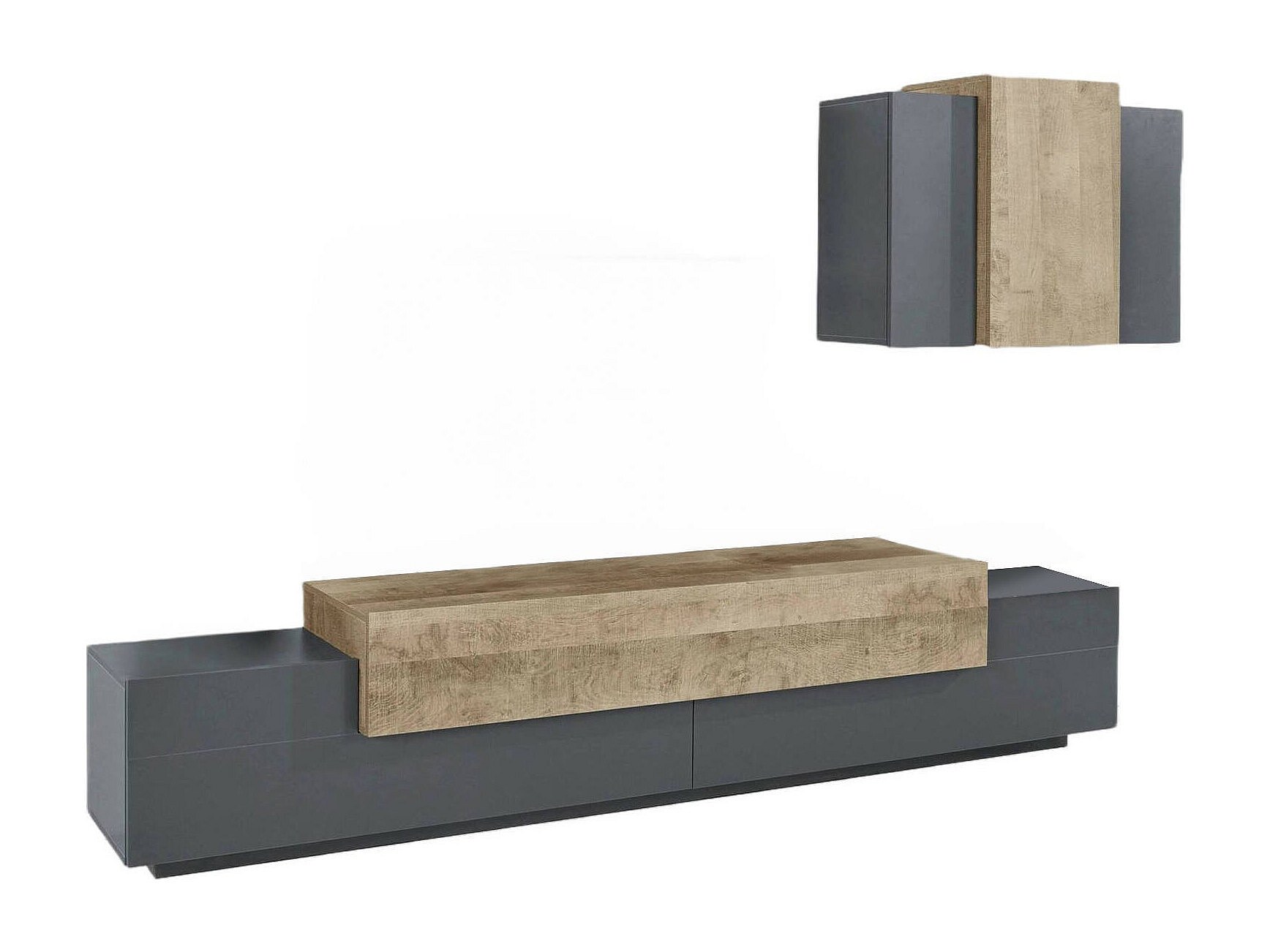 Élément mural Dmar, ensemble de salon meuble TV, meuble de salon polyvalent, 100% Made in Italy, 240x45h180 cm, Anthracite et Érable