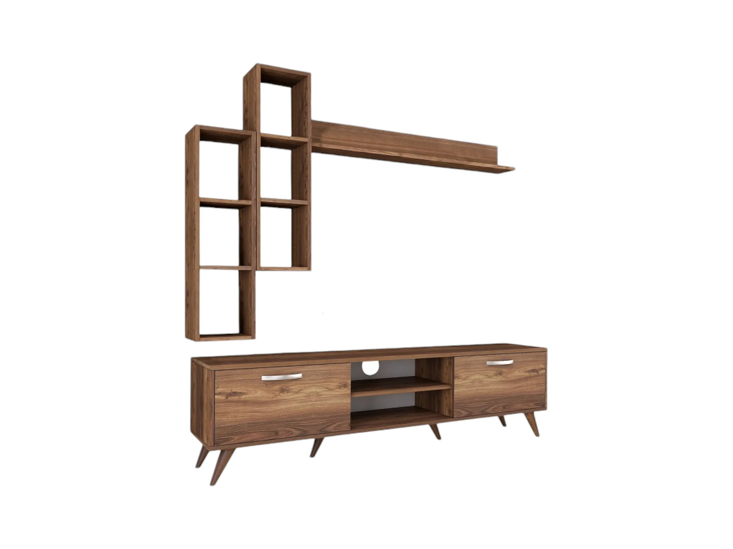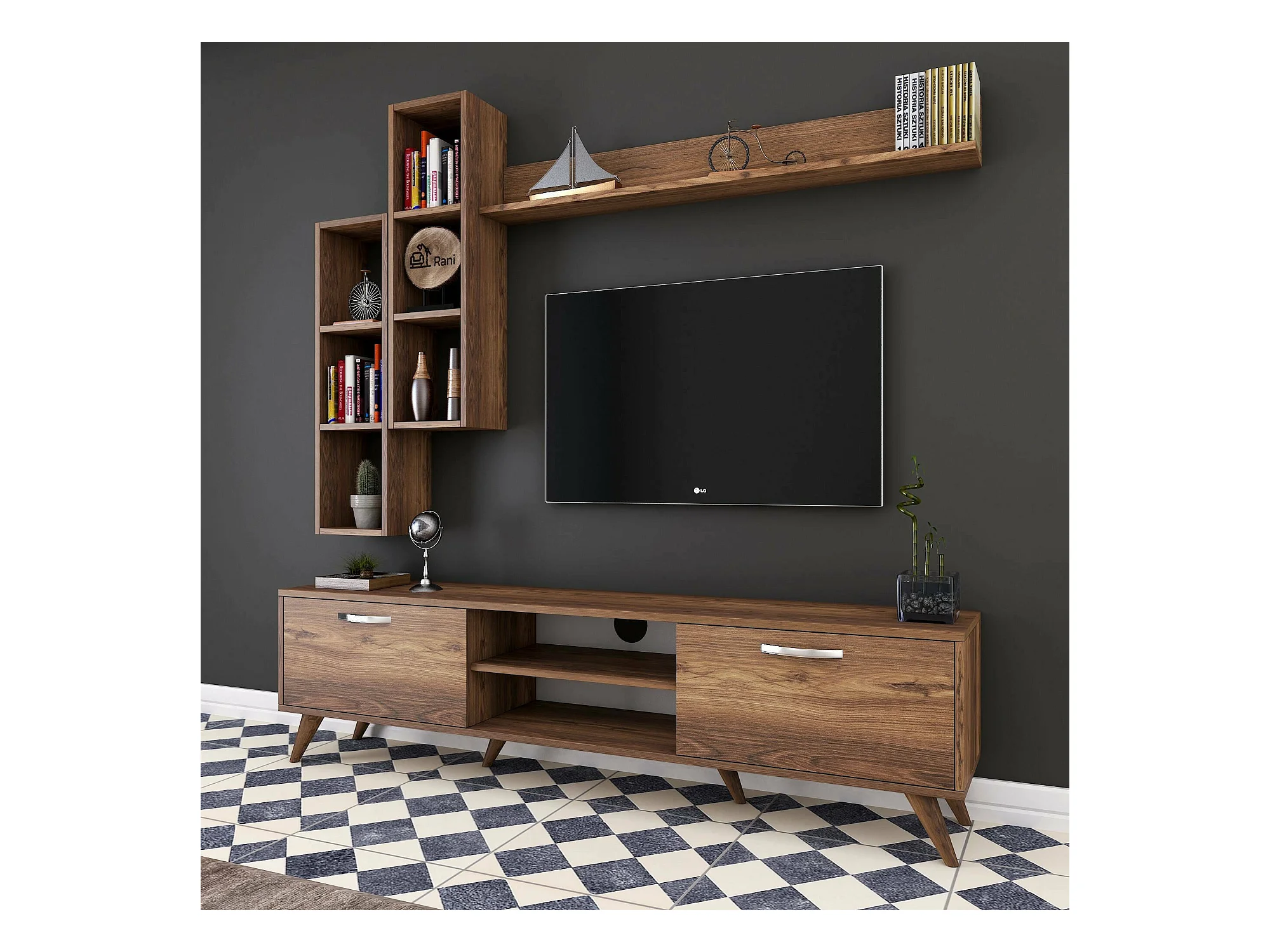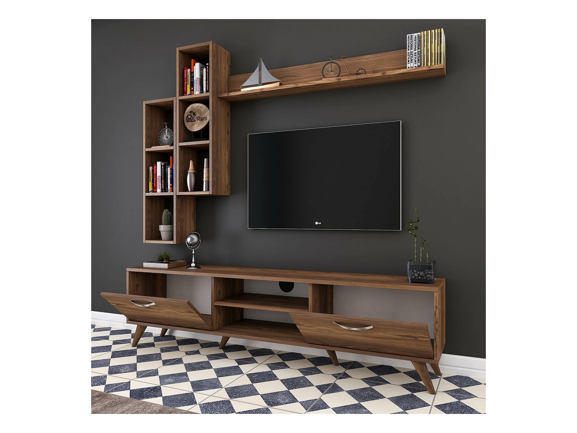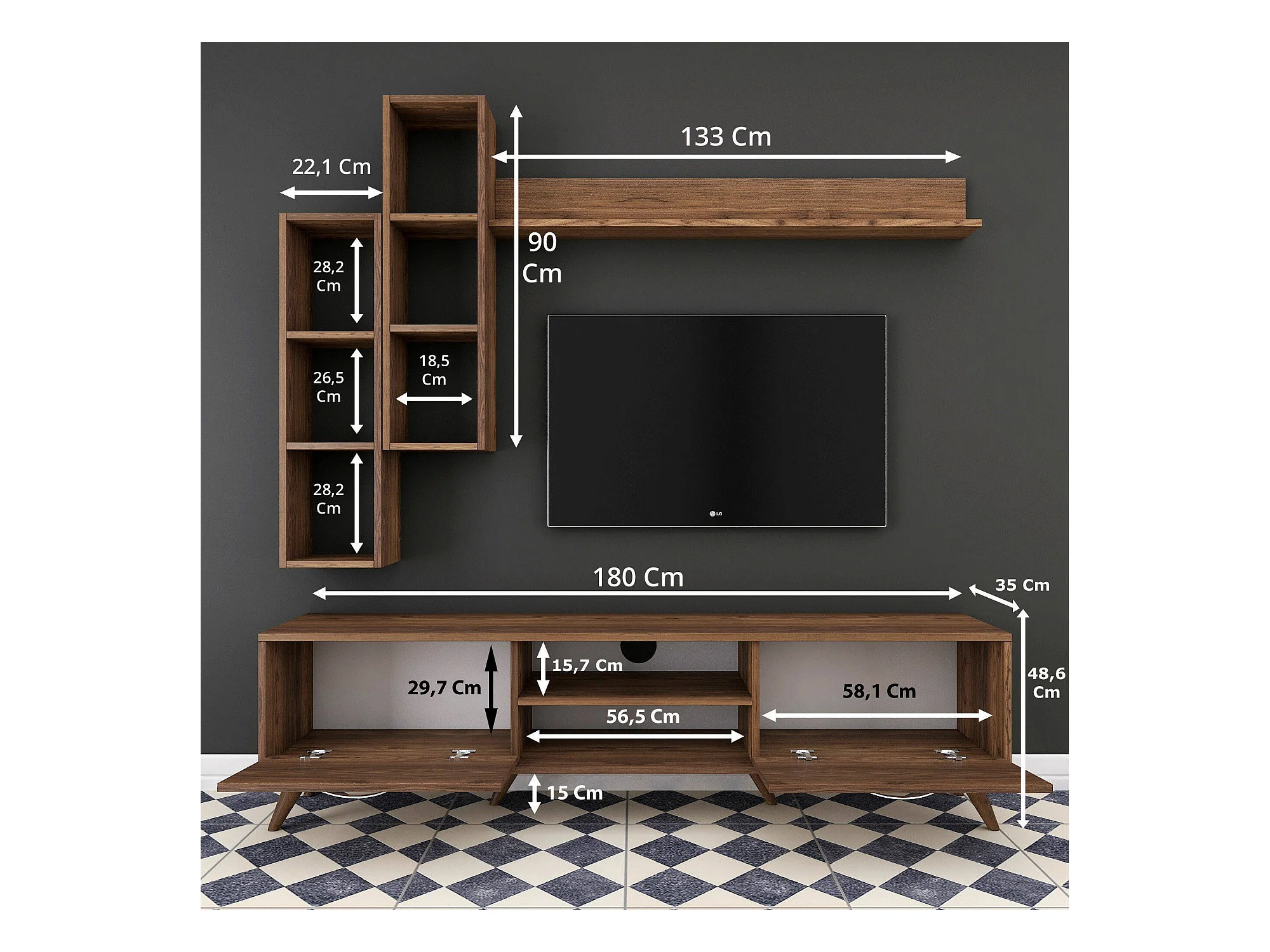 Meuble Mural Dmaragliul, Composition du salon, Meubles de salon polyvalents, Meuble télé, 180x35 h49 cm, Noyer