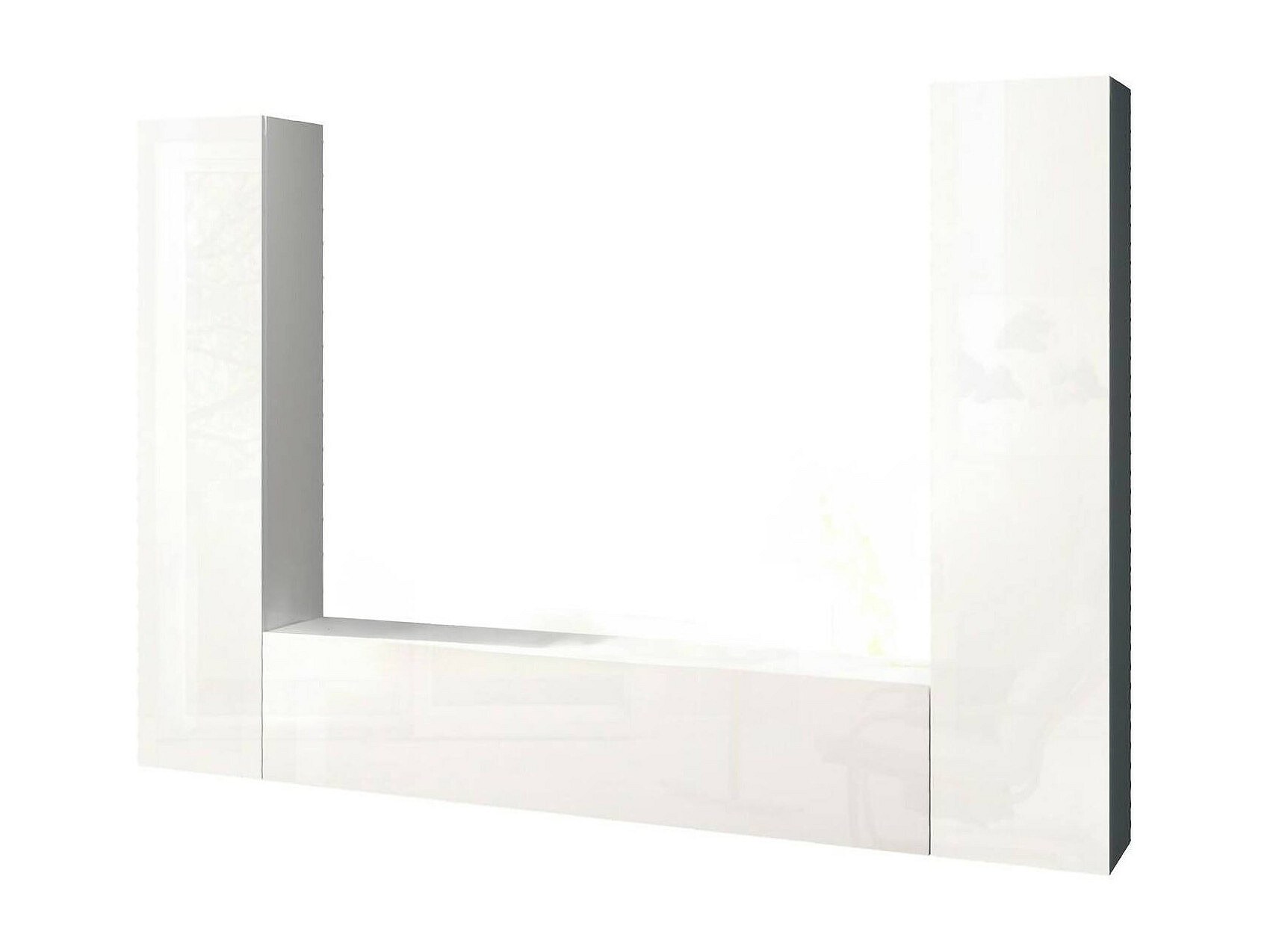 Système mural Giordano, meuble TV 3 portes, meuble de salon polyvalent, 100% Made in Italy, 260x30h180 cm, Blanc brillant
