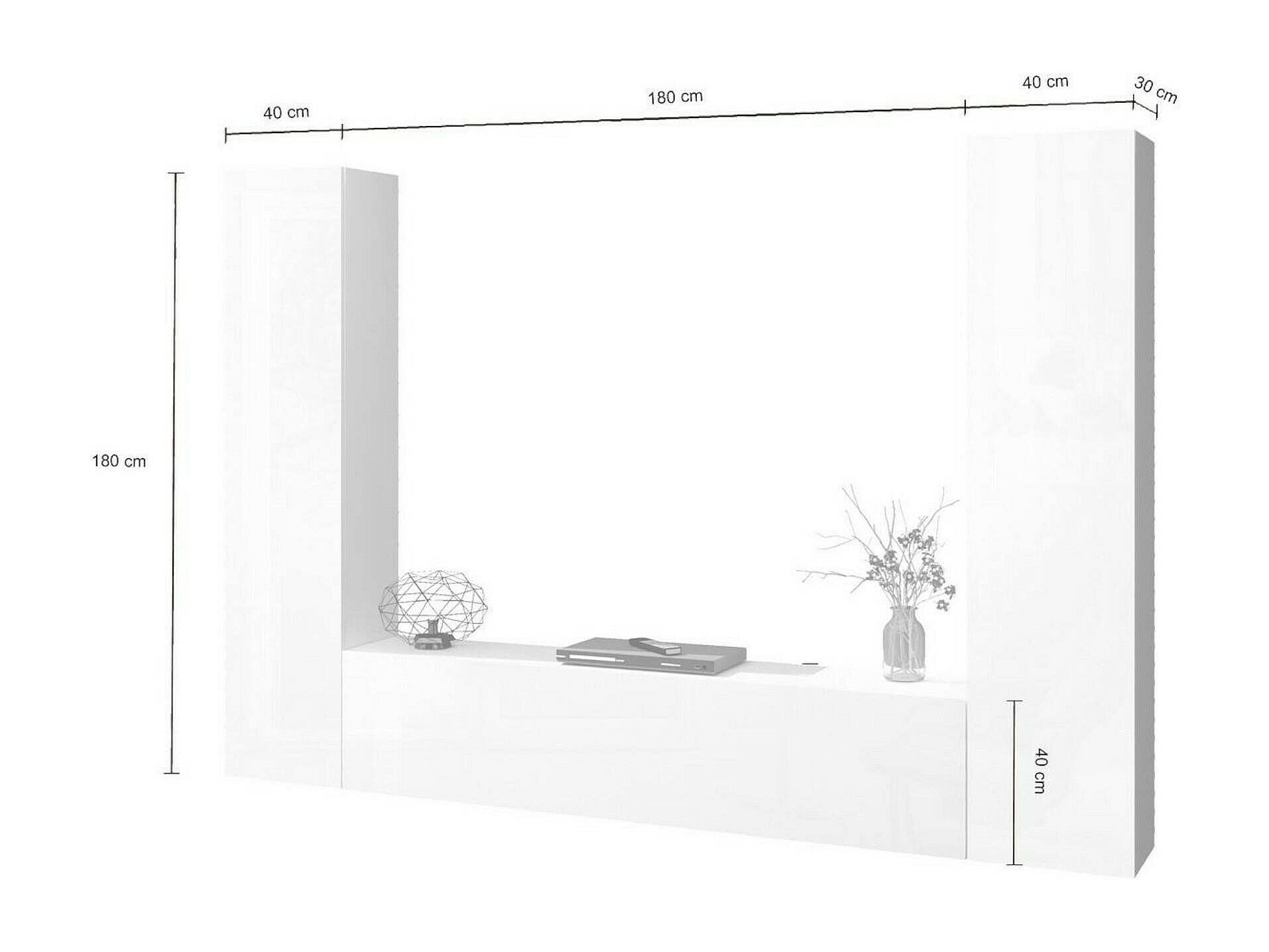 Élément mural Bruno, meuble TV 3 portes, Meuble de salon polyvalent avec lumière LED, 100% Made in Italy, 340x30h180 cm, Blanc brillant