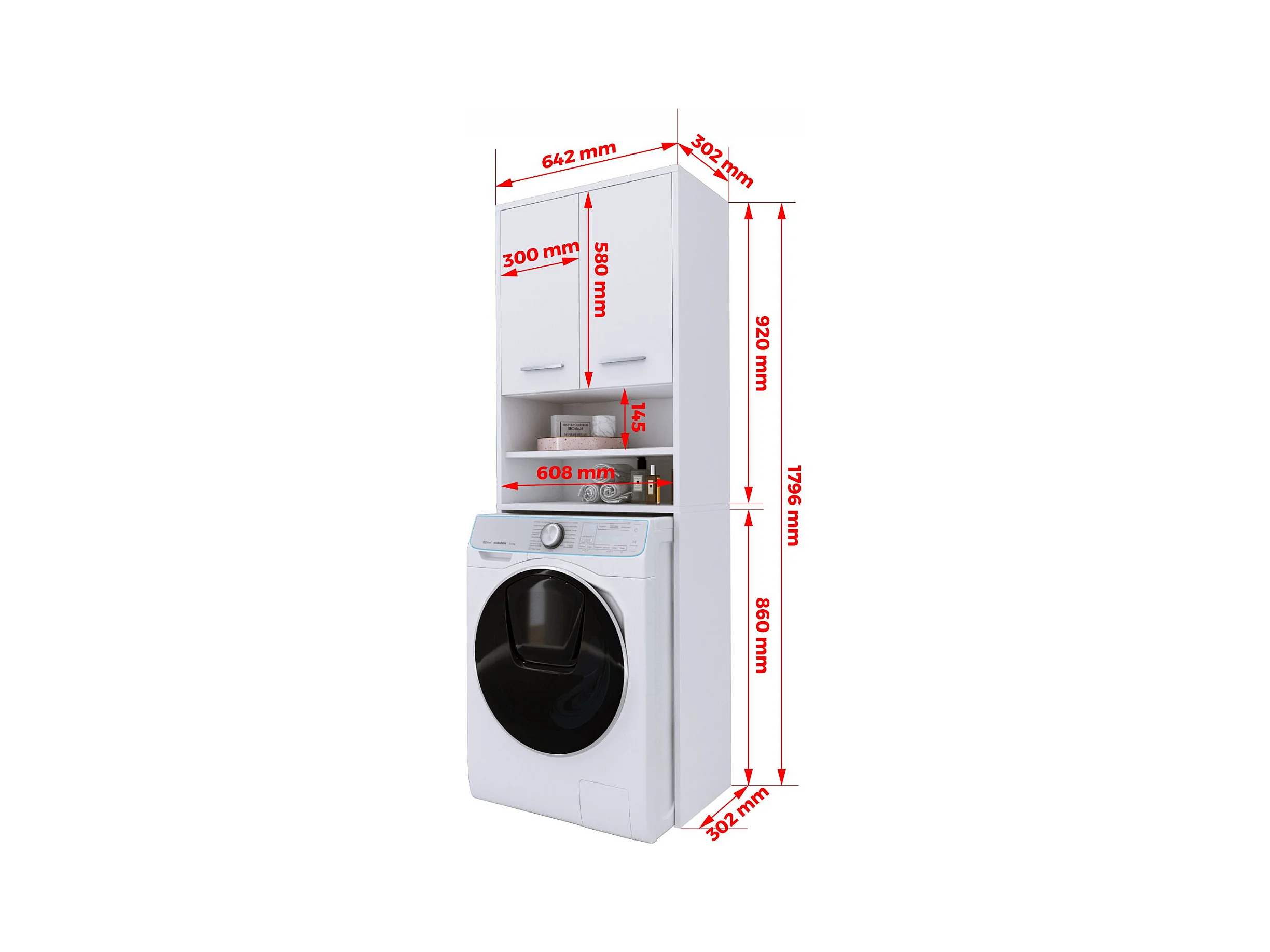Meuble pour la machine a laver, 2 armoires, 180 x 64 x 30 cm, blanc mat