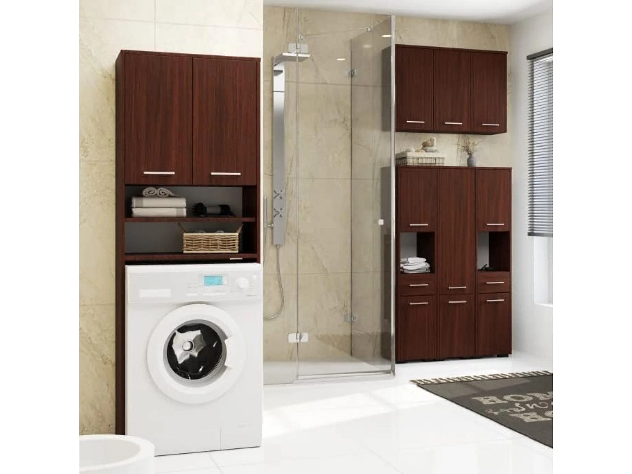 Meuble pour la machine a laver, 2 armoires, 2 étagères, 180 x 64 x 30 cm, wengé