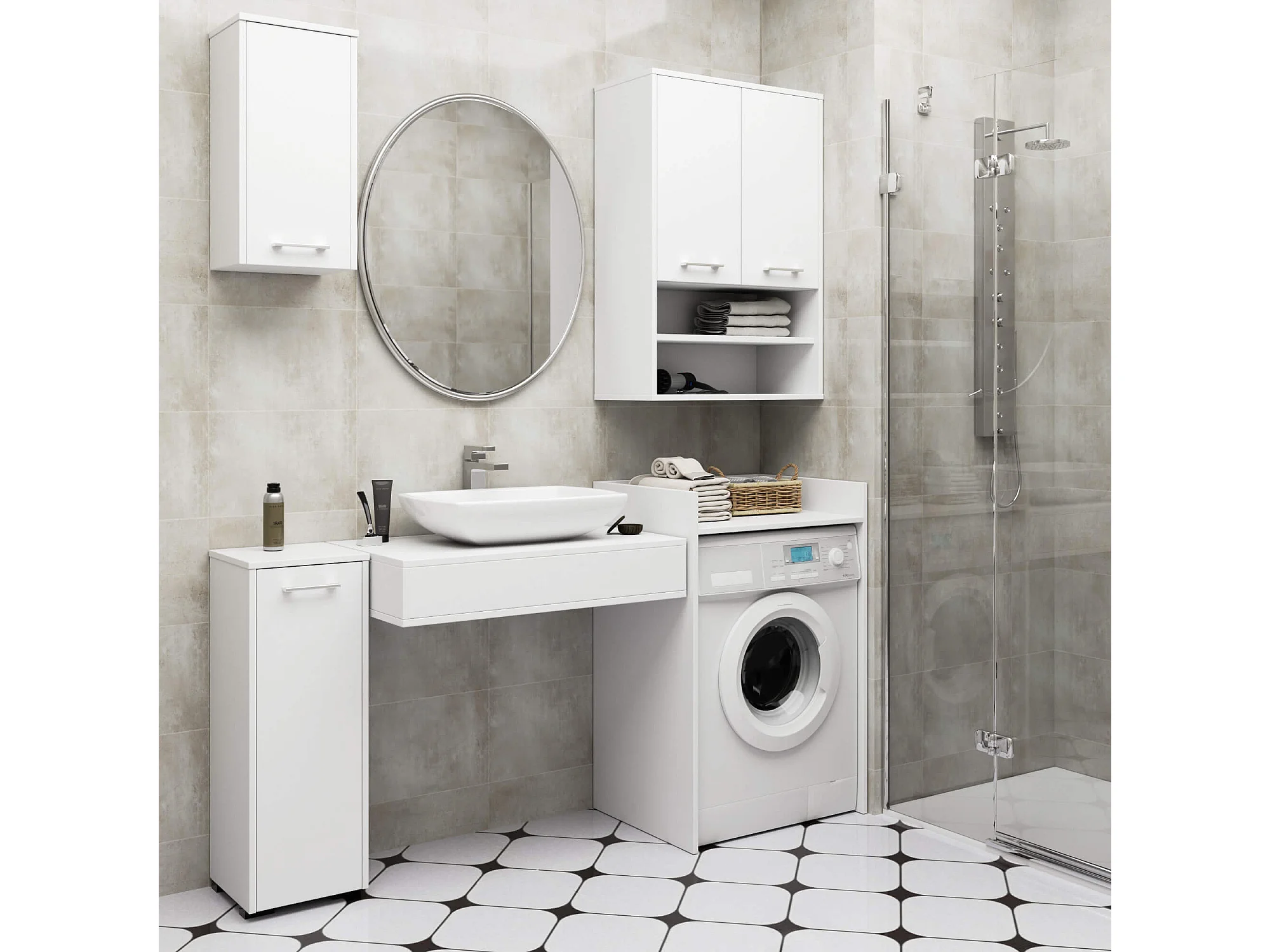 Meuble pour lave-linge AKORD FIN Blanche 64 cm 1 étagère 64x50x98 cm