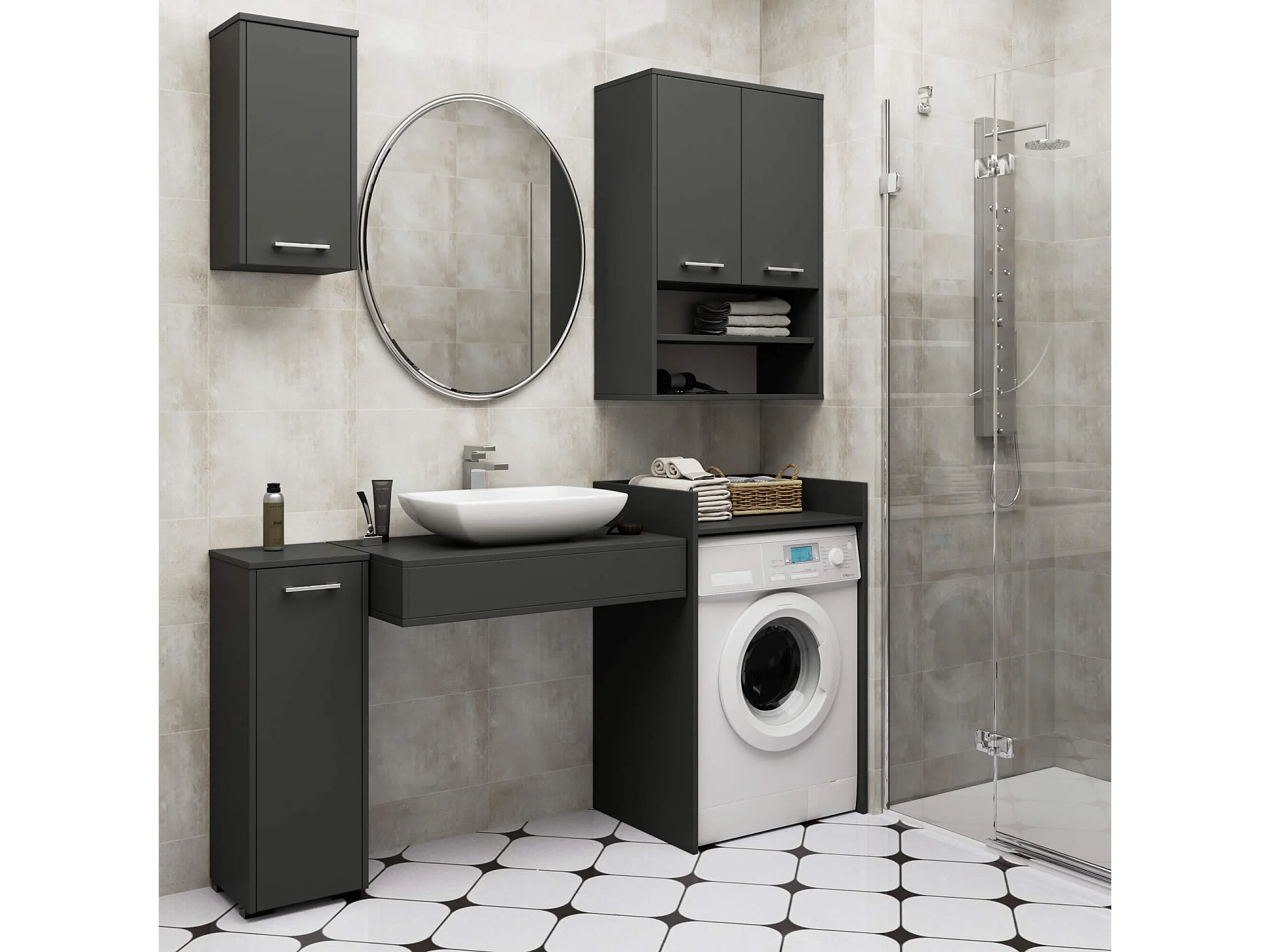 Meuble pour lave-linge AKORD FIN Gris Graphite 64 cm 1 étagère 64x50x98 cm