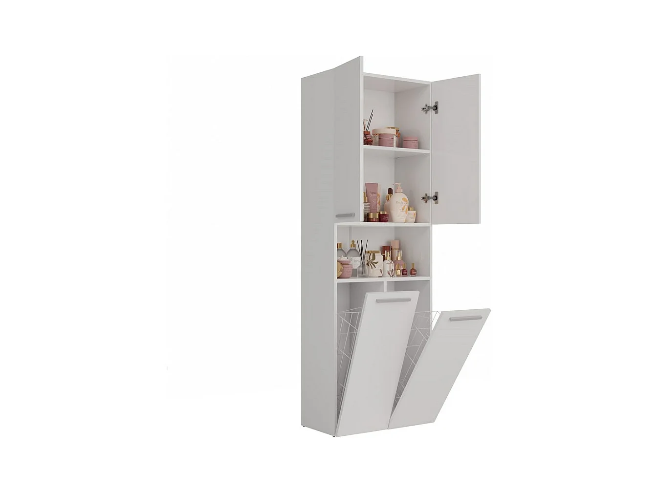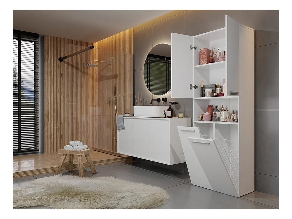 Meuble salle de bain, 174 x 30 x 60 cm, Blanc Mat / Blanc Brillant
